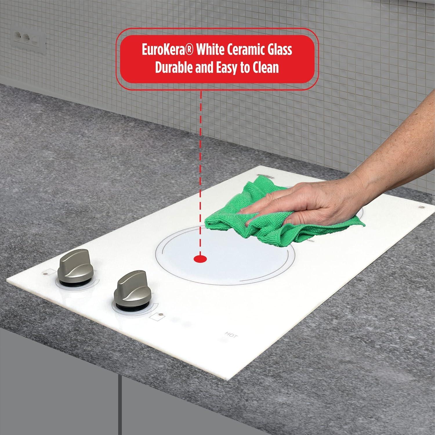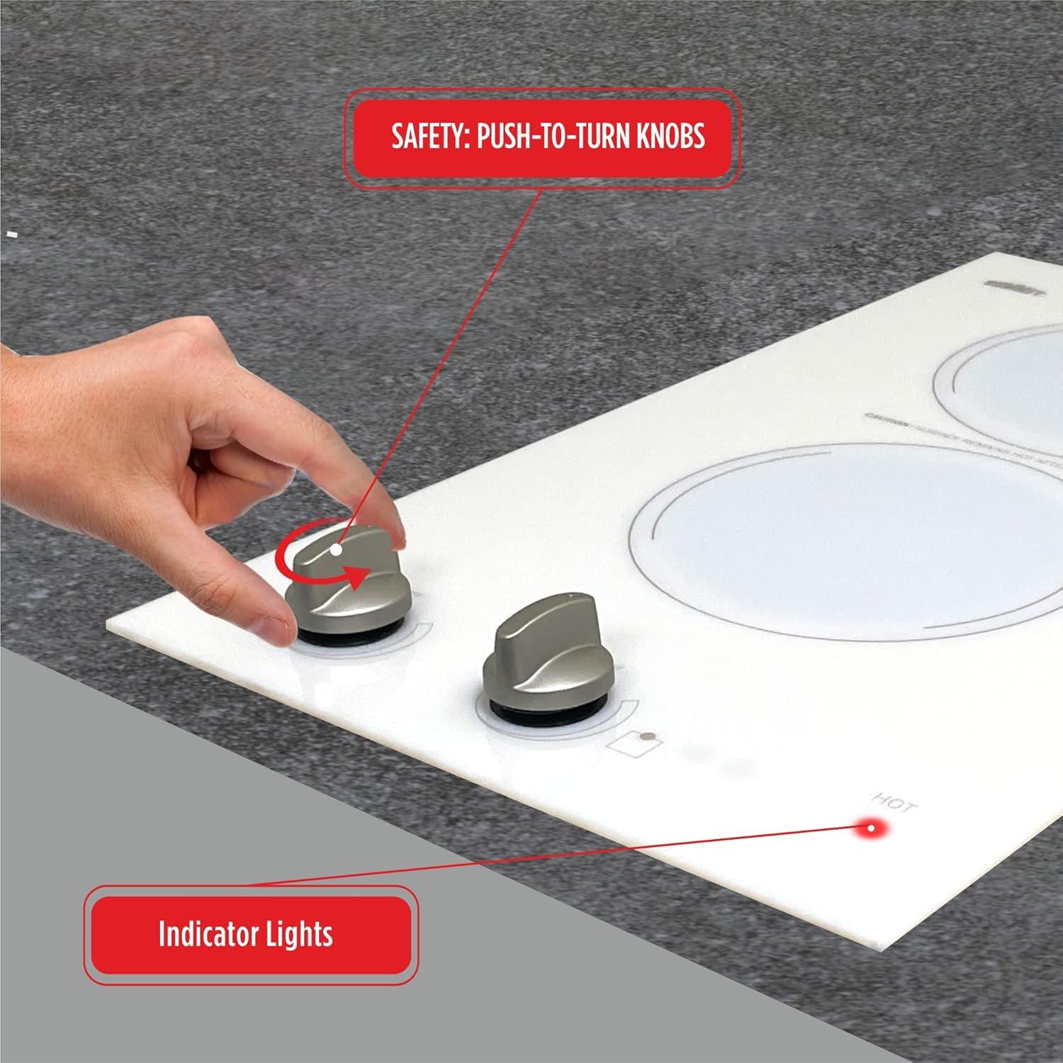 Great look, safe, and easy to clean: Easy cleanup and elegant style on a smooth ceramic glass surface in a jet black finish. Safety features a residual heat indicator light that indicates when the surface is still hot and individual indicator lights that show which burner is in use.