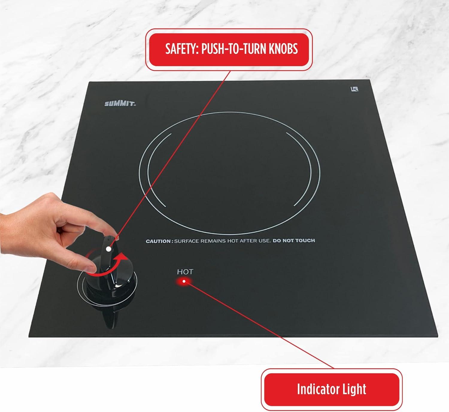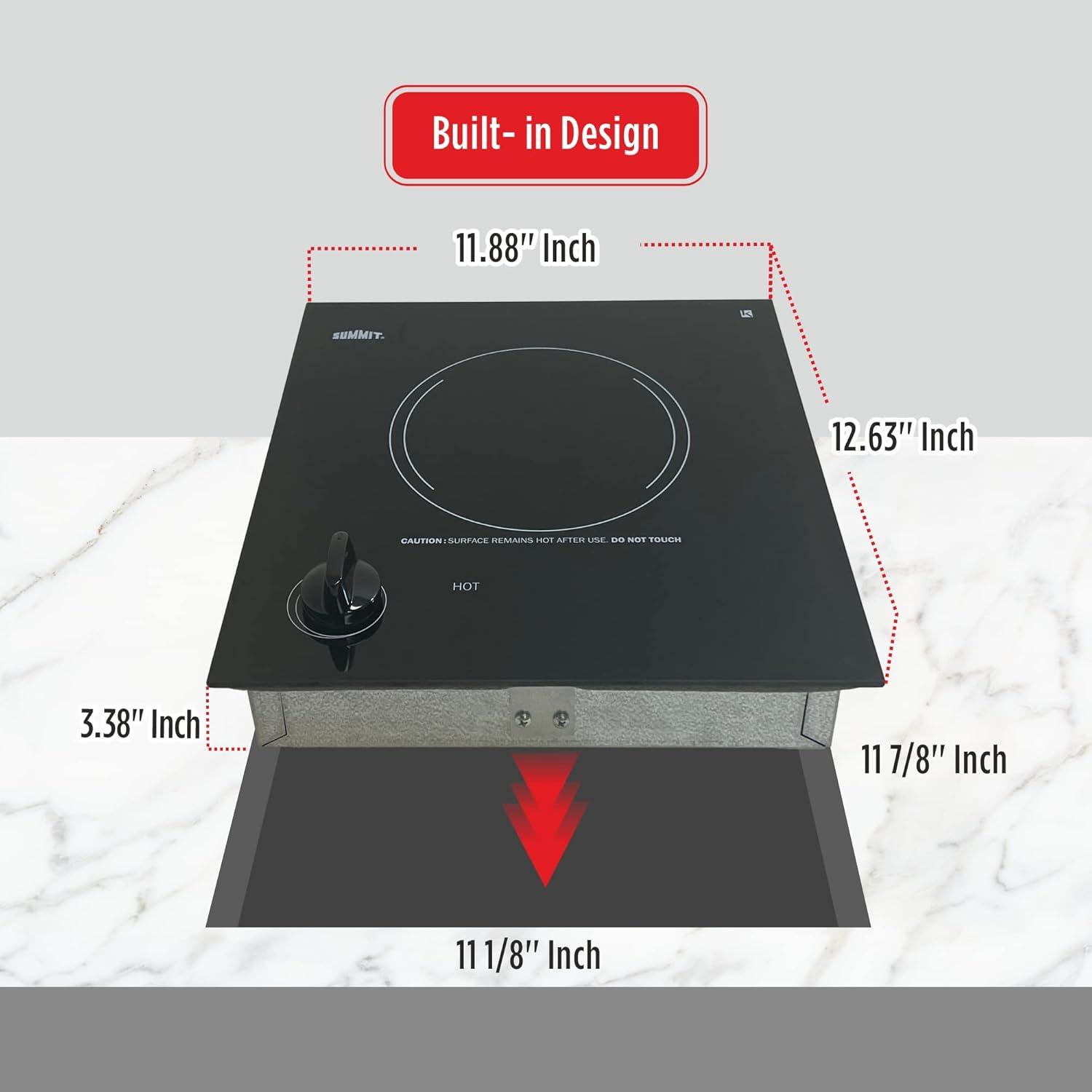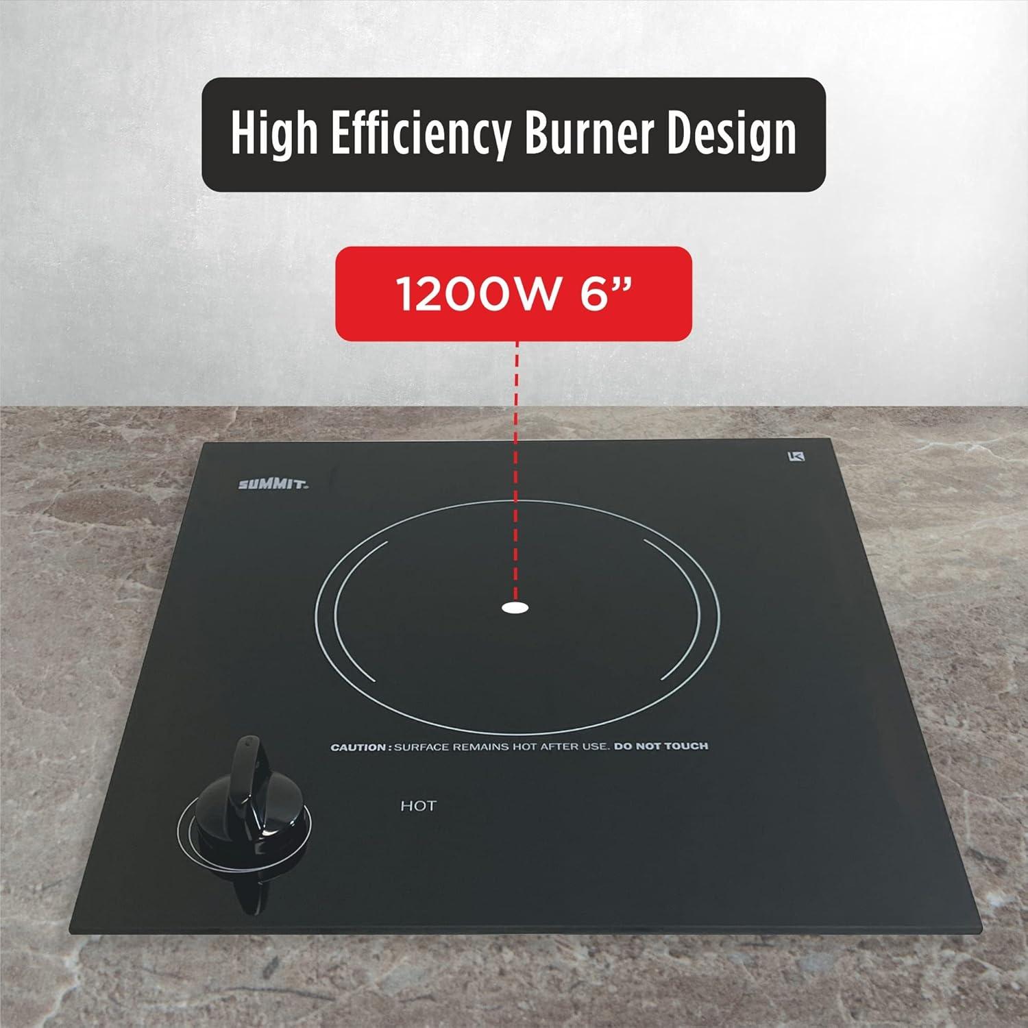 CR1115 Features: -Easy cleanup and elegant style on a smooth ceramic glass surface. -Single heating element. -Push-to-turn control: Prevents accidents by requiring a small amount of force to turn on cooktop heat. -Residual heat indicator light: Indicates when surface is still hot to touch. -Burner: Single. -US Electrical Safety: UL. Finish: -Black. Primary Material: -Ceramic. Cooktop Surface Style: -Smoothtop. Voltage: -115 Volts. Number of Burners: -1. Hot Surface Warning Light: -Yes. Generic Specifications: -Single 115V burner: Fits standard wall outlets. -Voltage / Frequency: 115 V AC/60 Hz. Dimensions: Overall Height – Top to Bottom: -3.38″. Overall Width – Side to Side: -11.88″. Overall Depth – Front to Back: -12.63″. Overall Product Weight: -12 lbs.