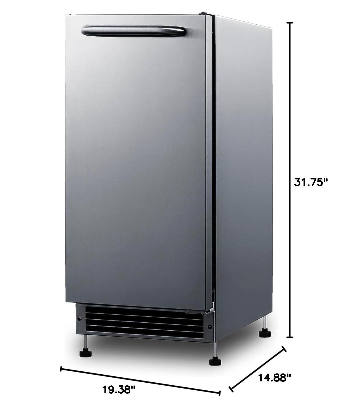 Everything you want in an outdoor ice maker: Includes pre-installed connection hose, removable ice bucket, ice scoop, and a holder for the scoop. Produces and stores more than 20 lbs of ice in an insulated storage bin.