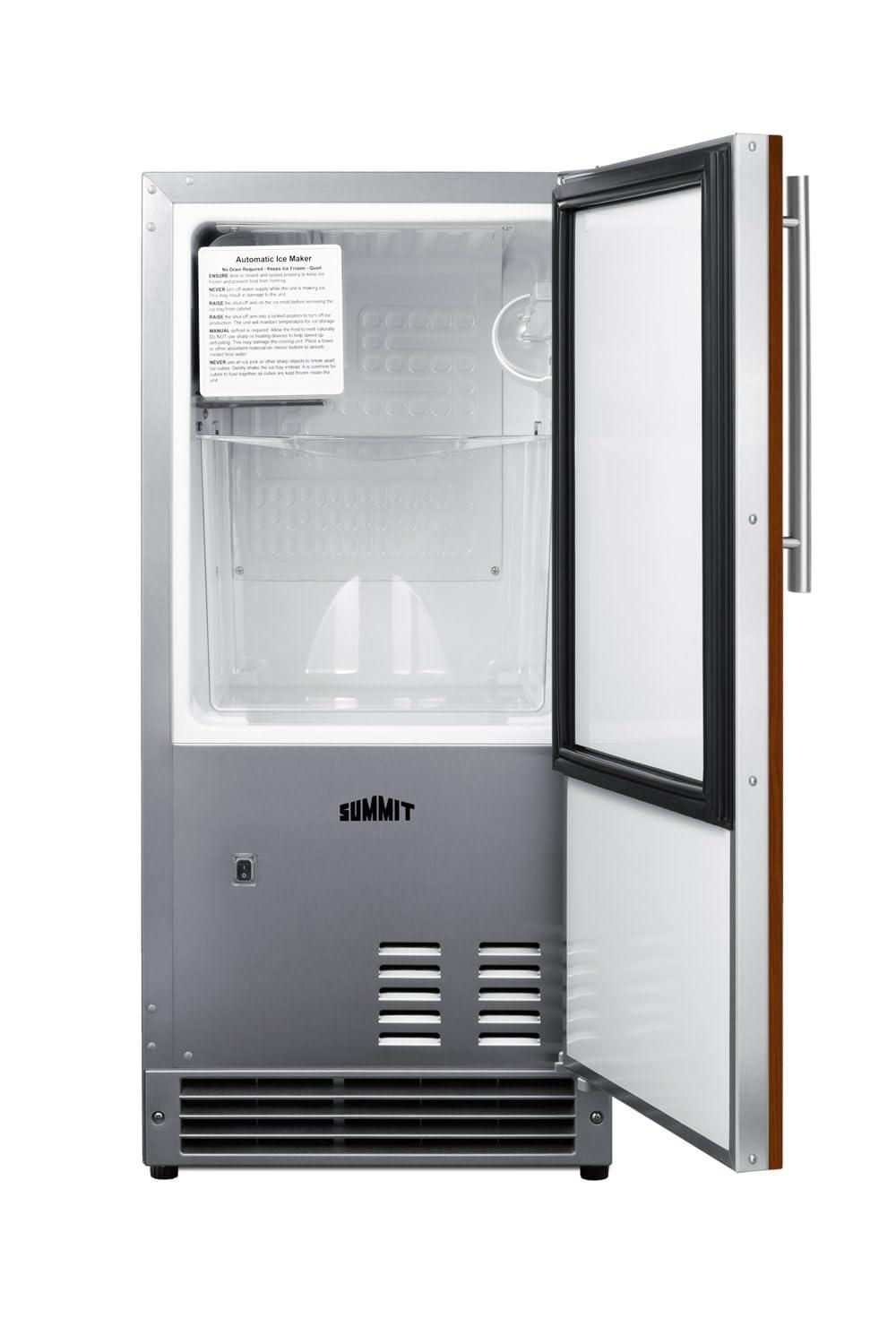 15″ Wide No-Drain Icemaker: This innovative icemaker offers a compact design with the convenience of no required drain. Whether placed indoors or outdoors, flexibility in positioning is guaranteed, making it a versatile addition to any space.