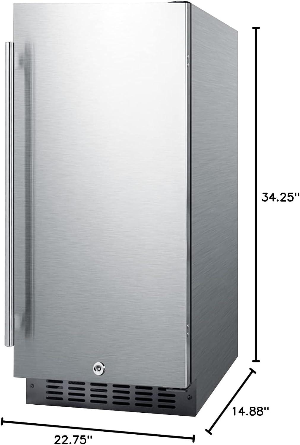 Summit Appliance SPR316OSCSS 15″ Wide Built-in Outdoor Residential Refrigerator in Stainless Steel with Lock, Professional Handle, Adjustable Glass Shelves, Door Storage and Digital Thermostat