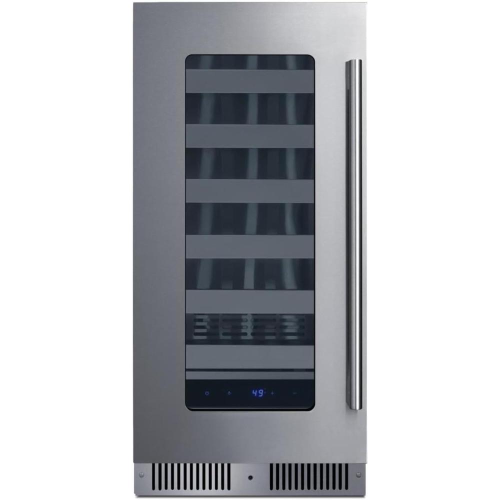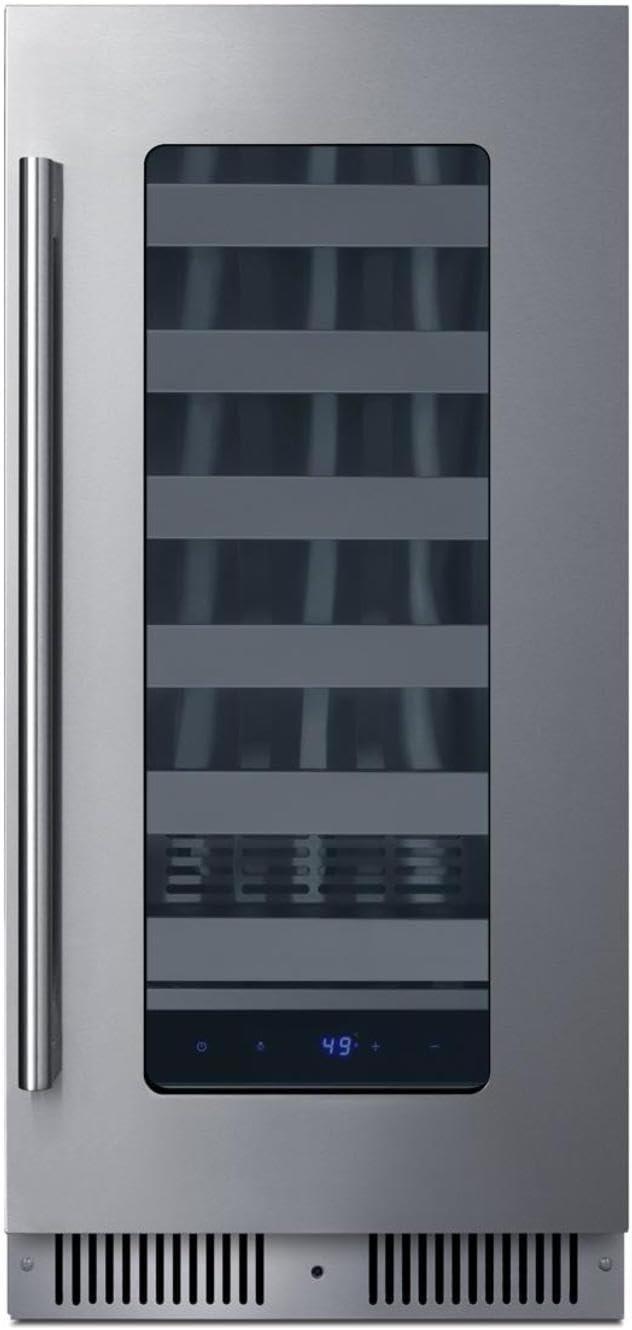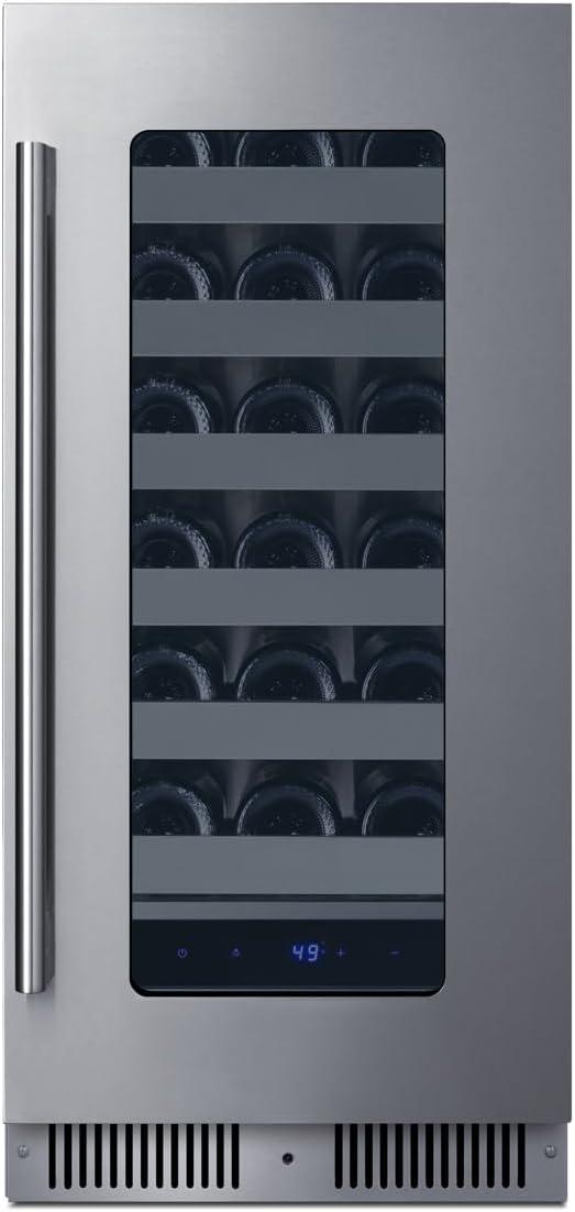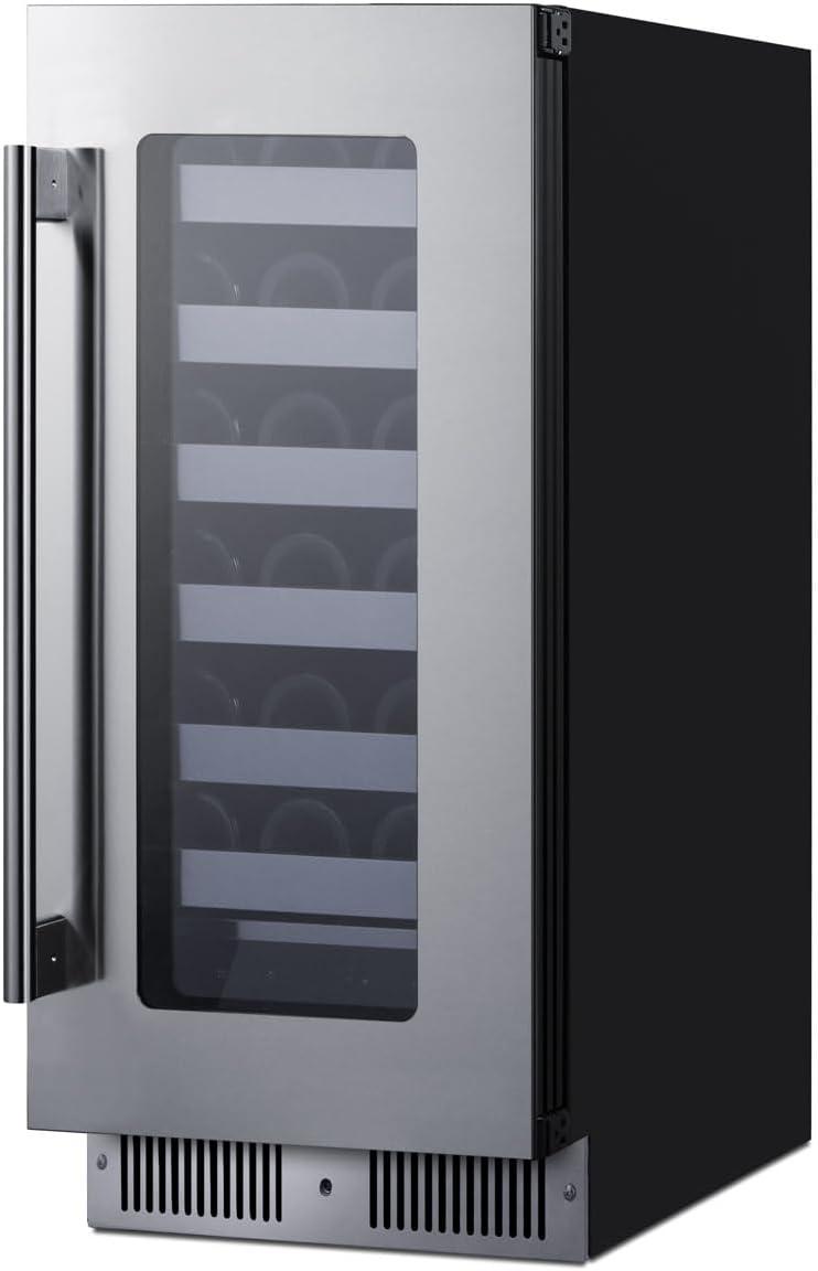 Summit 15” Wine Cellar, Built-in Wine Cellar, Shallow 18” Depth, 18 Bottle Capacity, Stainless Steel- SDHW1532(Stainless Steel)