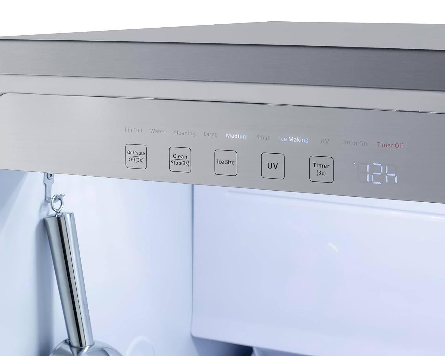 Hard working ice maker for your needs: This unit can produce 60 lbs. of clear ice cubes ice daily. Includes easy controls, an indicator light alerts users while making as and when the bin is full. The interior features UV lighting for easy visibility and added protection.
