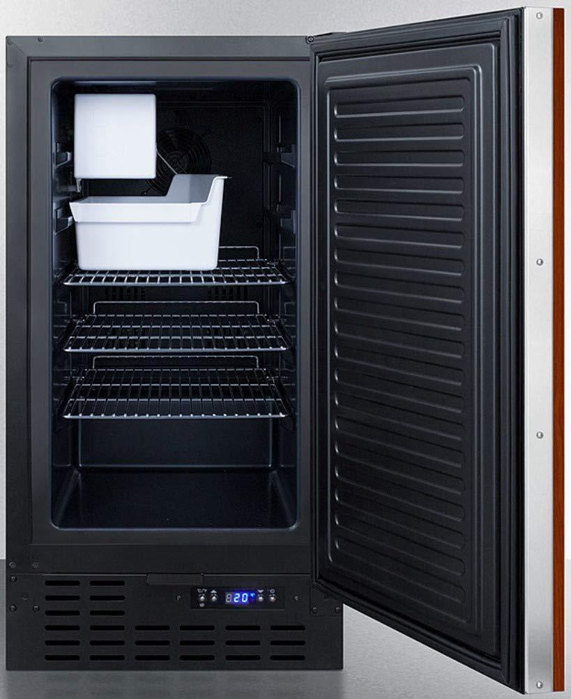 Summit Appliance BIM18IF 18″ Wide Built-in Undercounter Frost-free Crescent Icemaker For Built-in or Freestanding Use with Panel-ready Door and Black Cabinet, Digital Thermostat, Digital Display