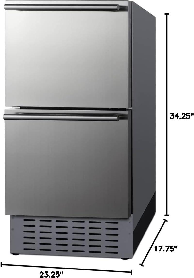 Summit Appliance ADRD18H34 18″ Wide 2-Drawer All-Refrigerator, 3.4 cu.ft Capacity, Open Drawer Alarm, Stainless Steel Construction, Indoor/Outdoor Compatible, Frost-free, Interior LED Lighting