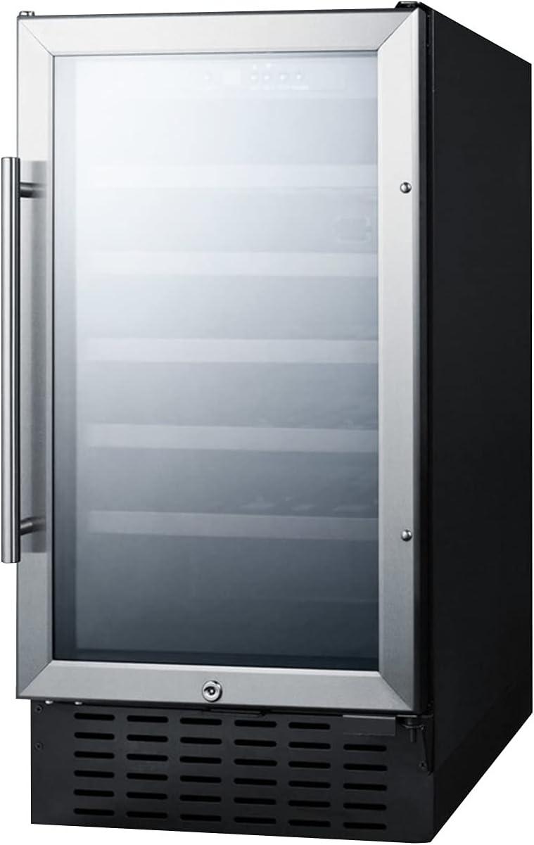 A modern look with timeless quality: Includes five wooden shelves in a jet black finish and a floor specially slotted to hold bottles. Modern look with a reversible glass door that features stainless steel trim and a professional handle.