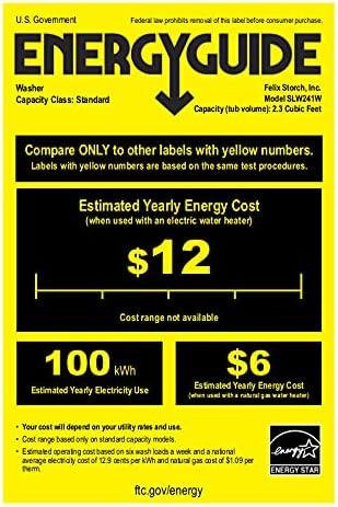 The SLW241W can wash up to 19.8 pounds of fabric inside the durable stainless steel drum, with a maximum speed of 1400 RPM and a choice of 14 wash programs. The dial wash cycle selector knob makes choosing a wash cycle easy, while the digital touchscreen display allows users to monitor the washer's progress. This unit has a classic white cabinet and glass door. It can be used for freestanding or recessed installation with 1″ side clearance, 1″ top clearance, and 2″ rear clearance. A pre-installed 3-pronged cord works with 208-240V outlets at 15 amps, while four adjustable leveling legs are included to ensure the unit is level on uneven surfaces