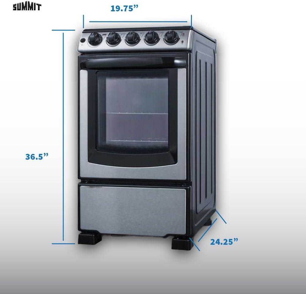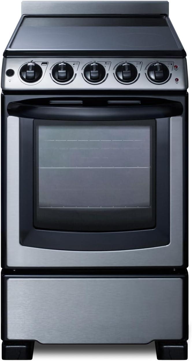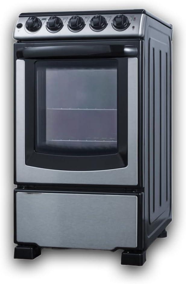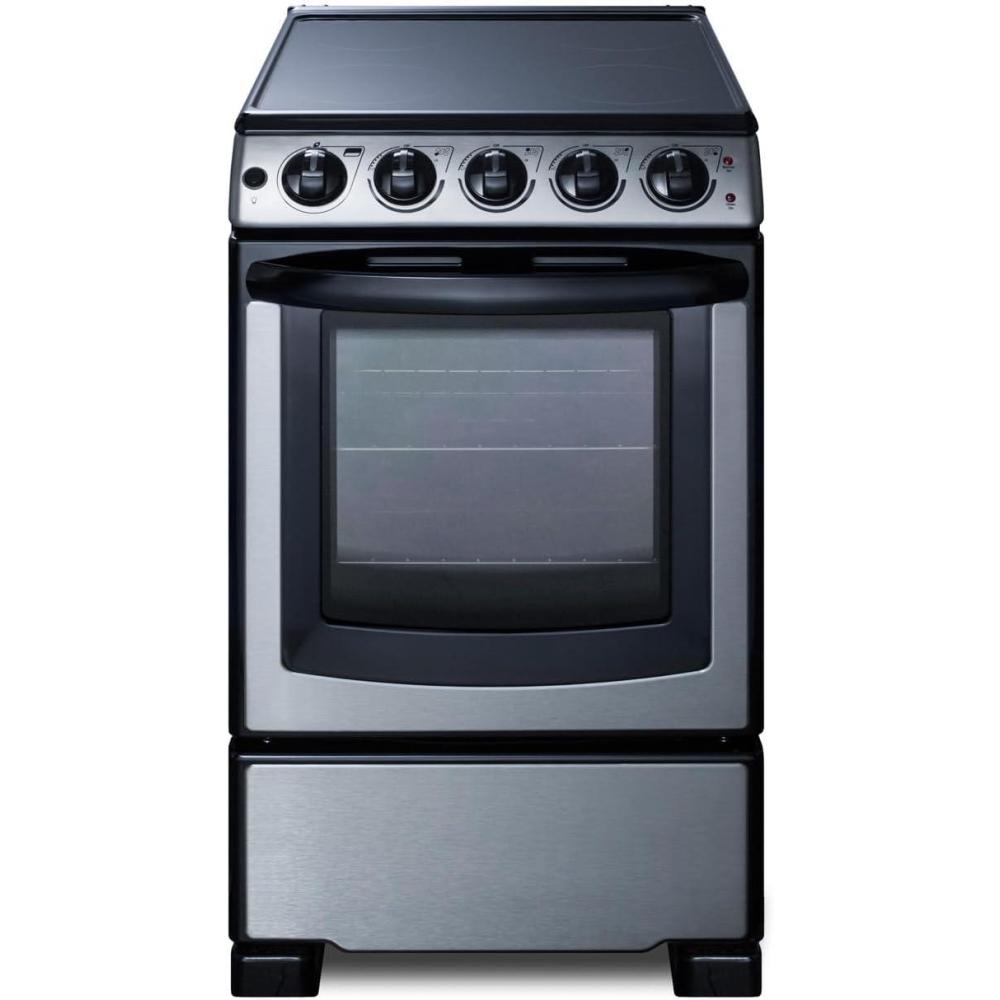 Luxury design and quality in compact size: This 220V electric range is just under 20″ wide, perfect for smaller spaces and apartments.. The front manifold, oven door, and lower panel feature a stainless steel finish, with a black trimmed oven window and handle for a modern look. Versatile design includes a removable 2″ high stainless steel backguard, allowing a standard range or a slide-in look that allows you to integrate the unit with your own design.
