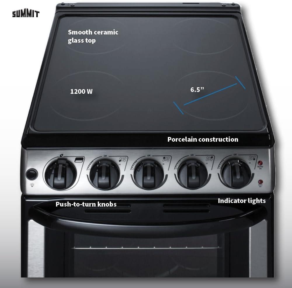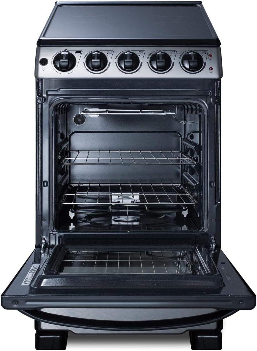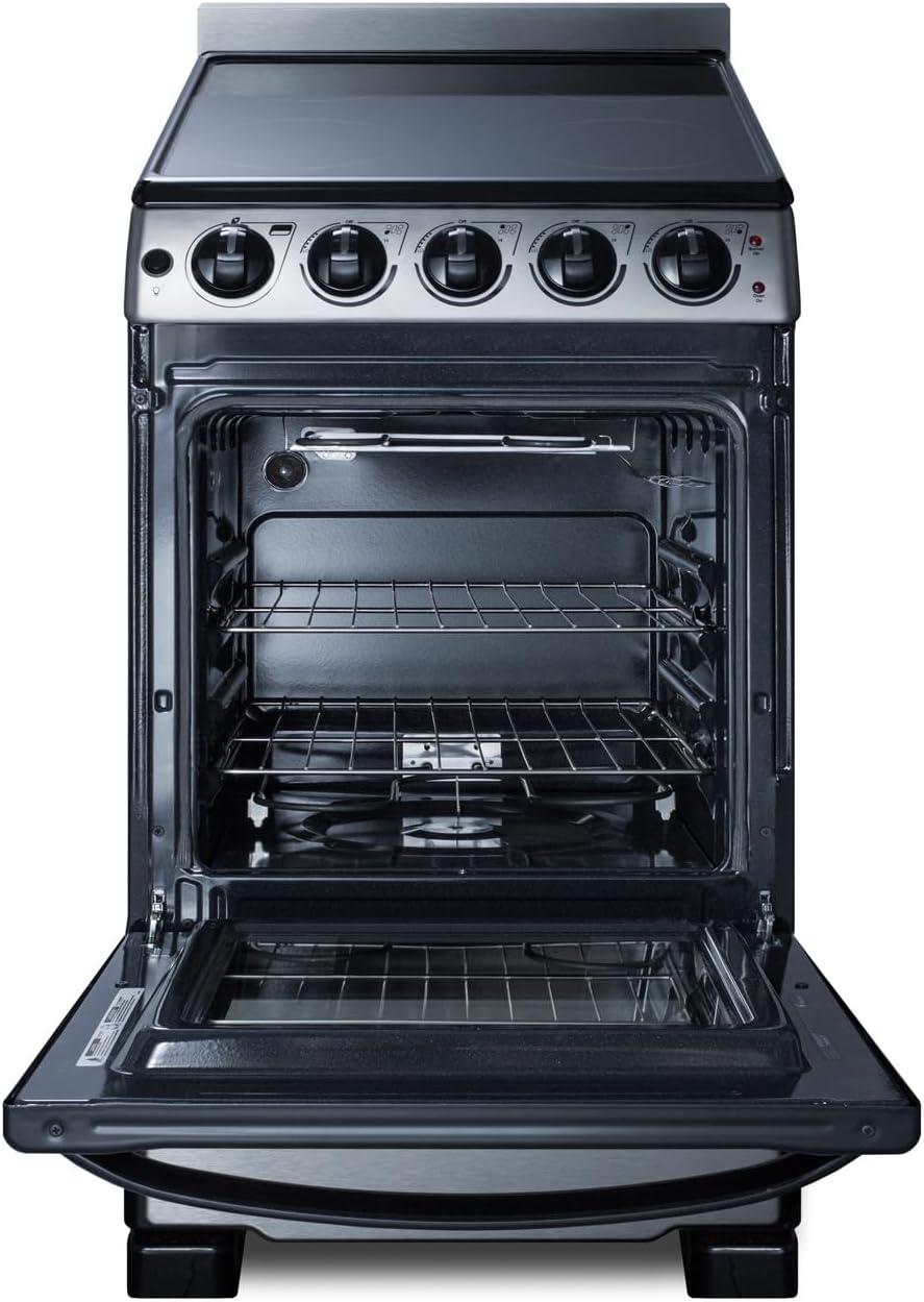 Luxury design and quality in compact size: This 220V electric range is just under 20″ wide, perfect for smaller spaces and apartments.. The front manifold, oven door, and lower panel feature a stainless steel finish, with a black trimmed oven window and handle for a modern look. Versatile design includes a removable 2″ high stainless steel backguard, allowing a standard range or a slide-in look that allows you to integrate the unit with your own design.