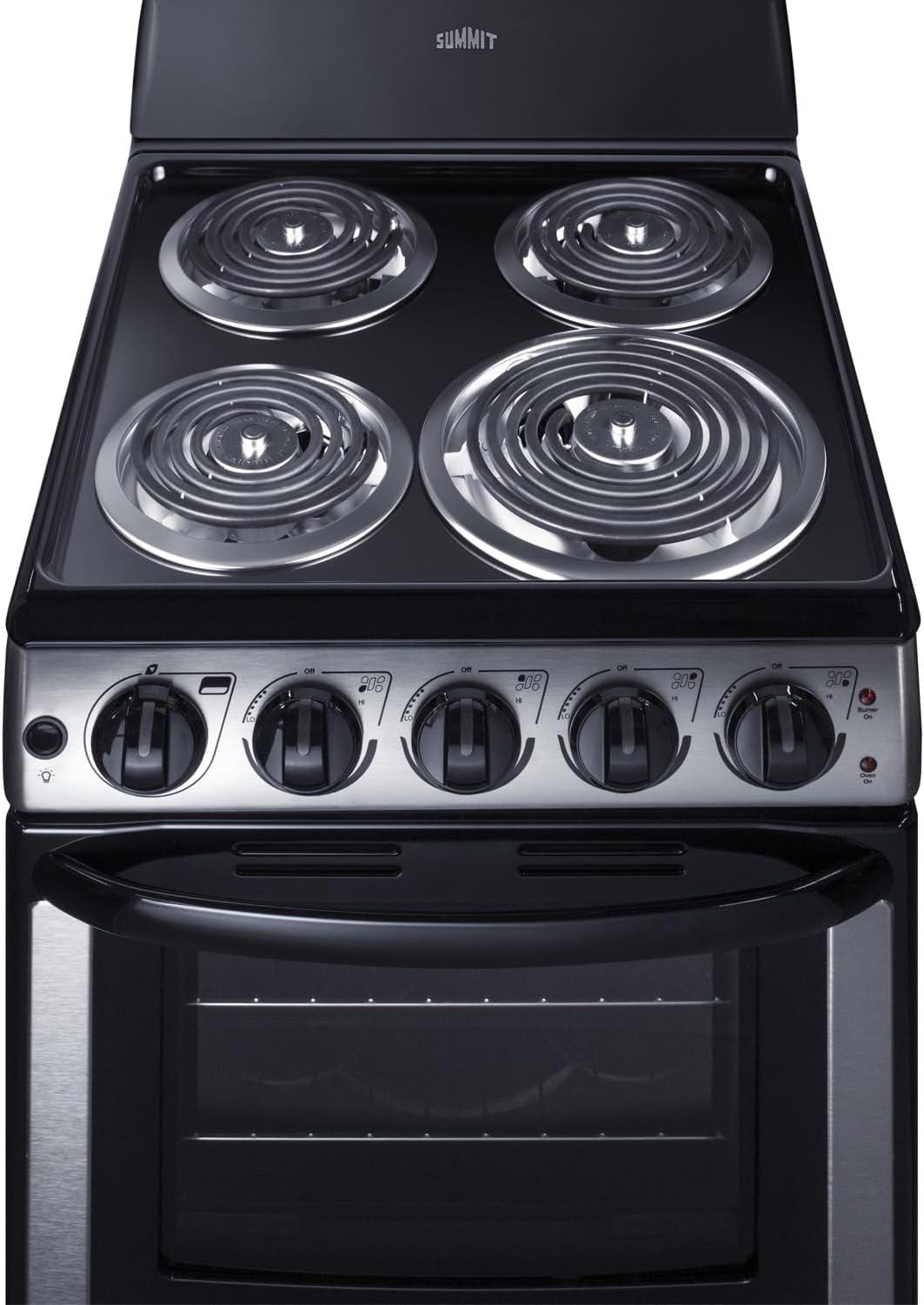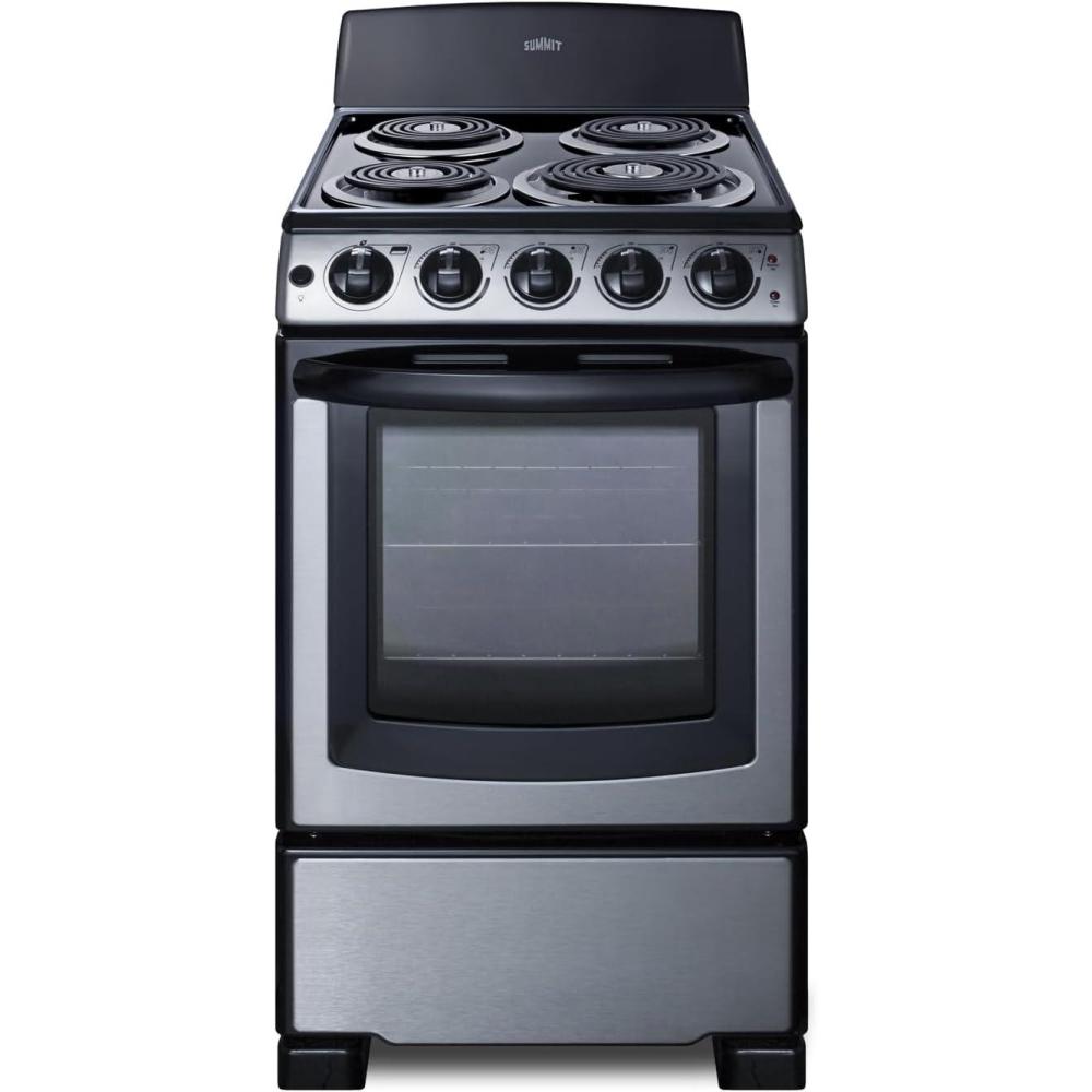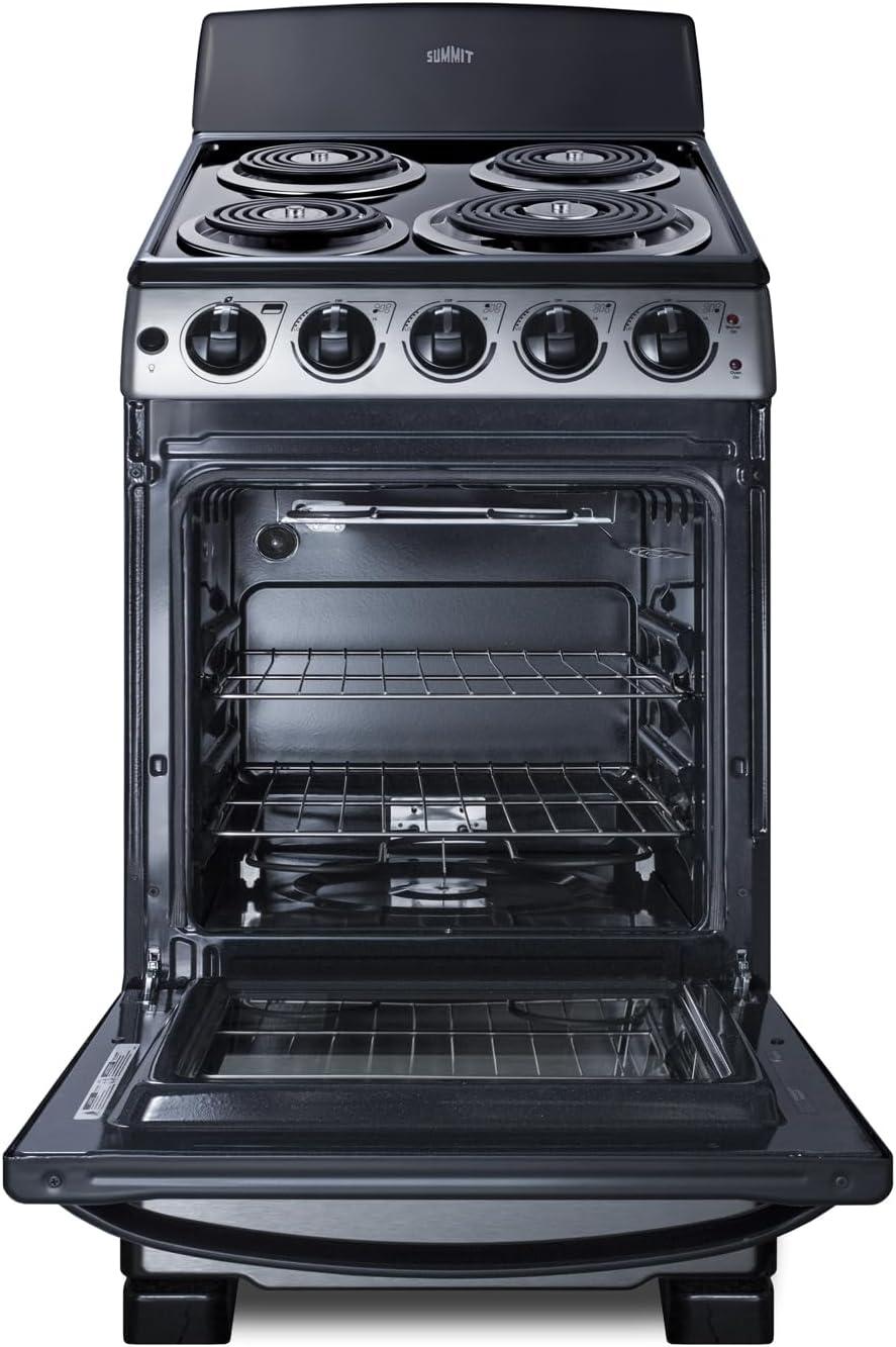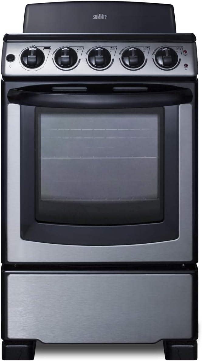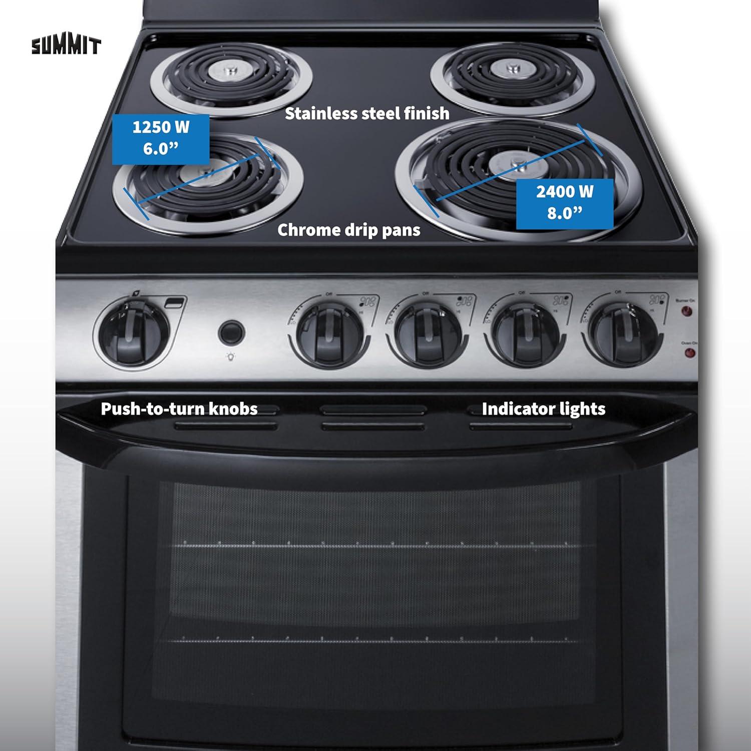 Summit 20″ Electric Range, 220V 4 Burner Range, 2.3 cu.ft. oven, White- RE203W(Stainless Steel)