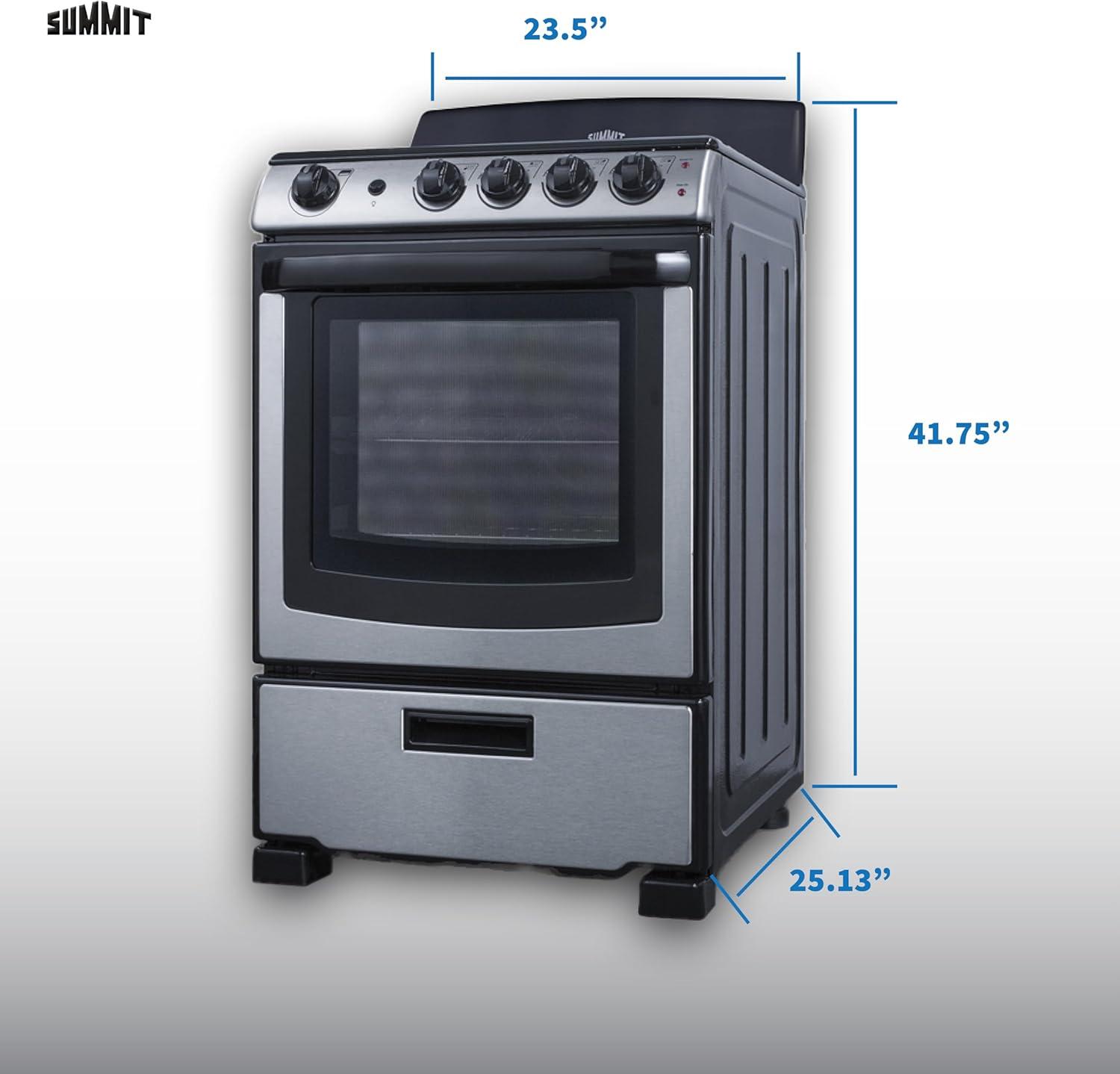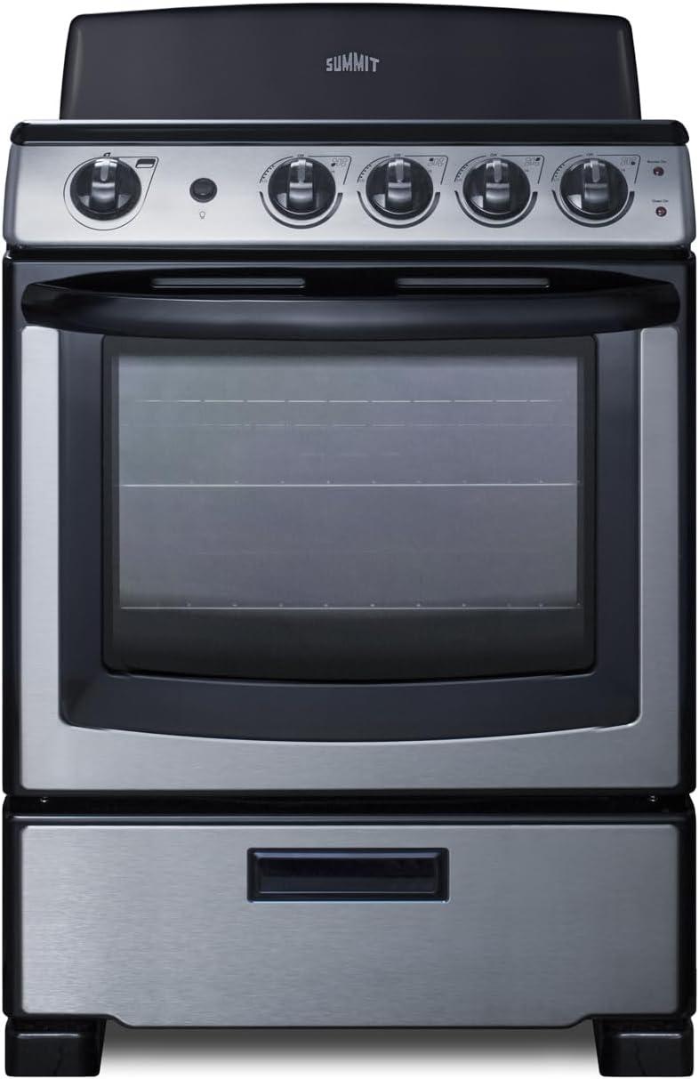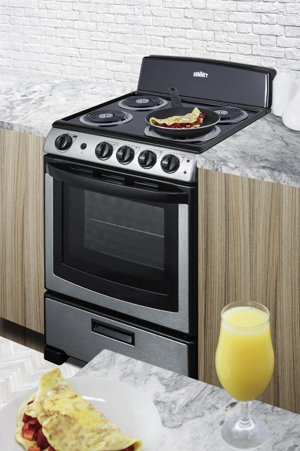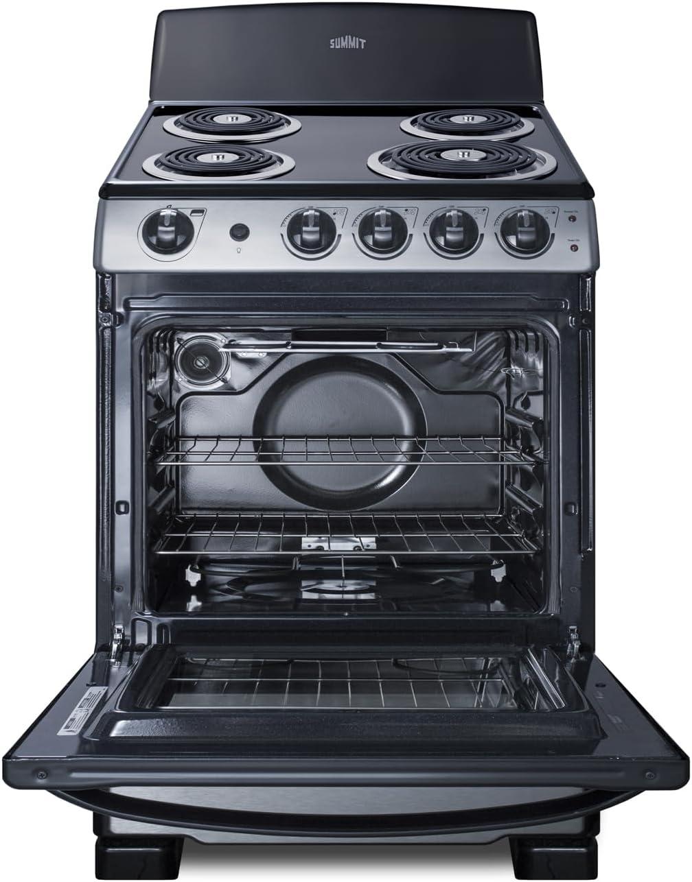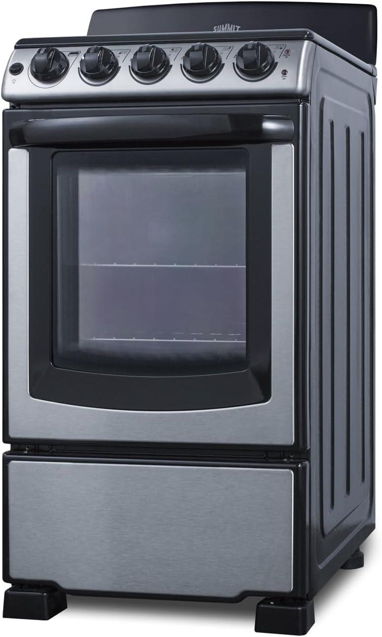 Summit 20″ Electric Range, 220V 4 Burner Range, 2.3 cu.ft. oven, White- RE203W(Stainless Steel)