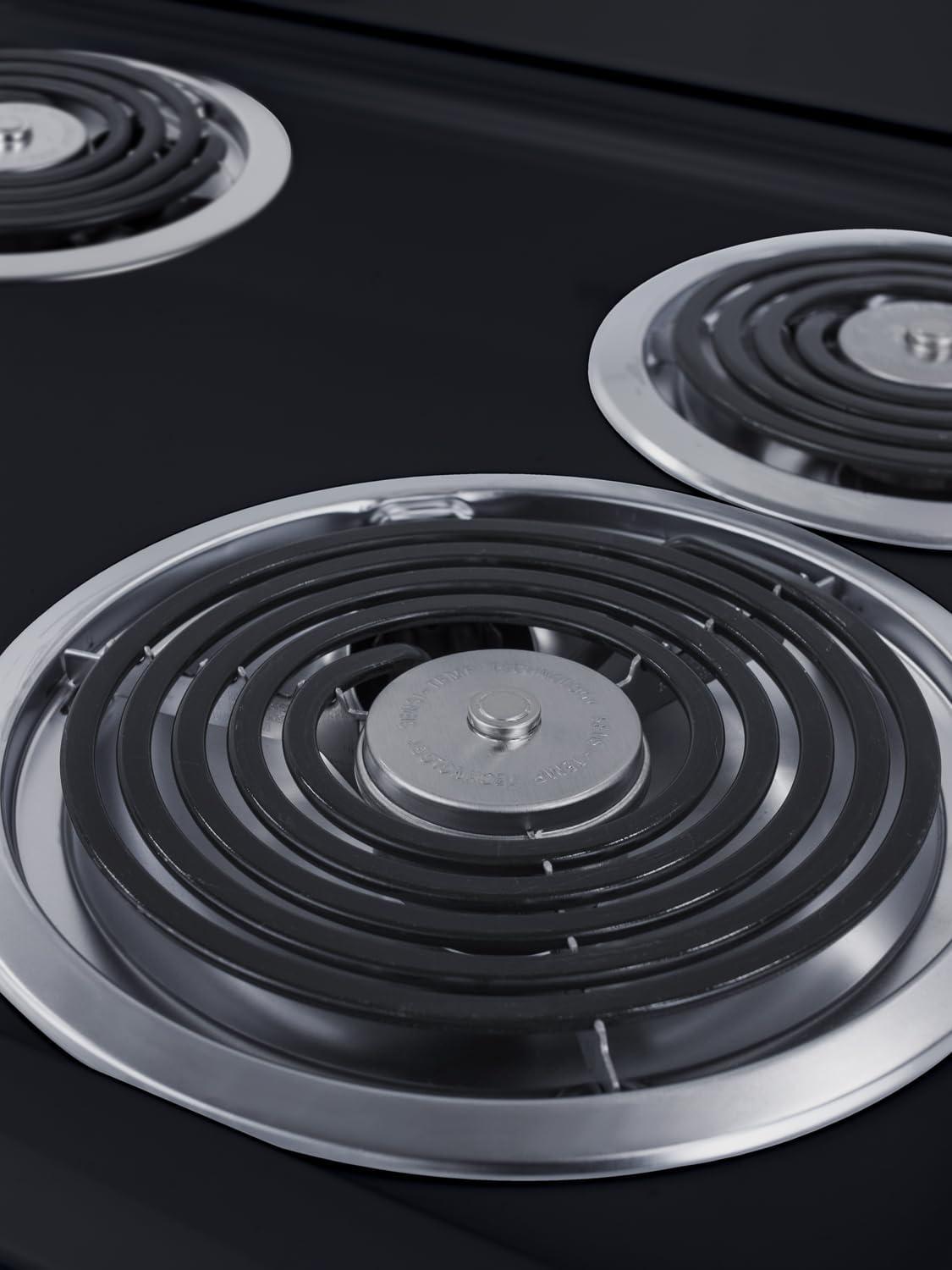 Summit 20″ Electric Range, 220V 4 Burner Range, 2.3 cu.ft. oven, White- RE203W(Black)