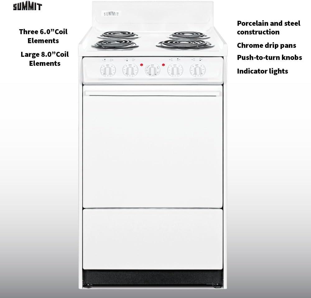 Made for cooking your favorite meals: This unit features one 8″ 950W and three 6″ 650W coil elements for a variety of needs. The oven includes two adjustable oven racks and a waist-high broiler, located inside the oven.