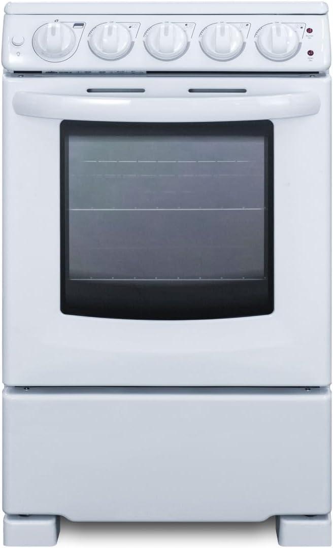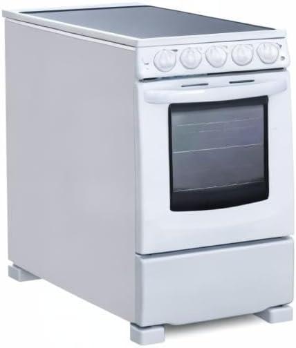 Save space and customize for your needs: A reliable 220V electric range sized at just under 20″ wide in a classic white finish. The versatile design includes a removable 2″ high stainless steel backguard, allowing you the choice of a standard range style or a slide-in look with a flat surface that allows you to better integrate the unit with your own backsplash design.