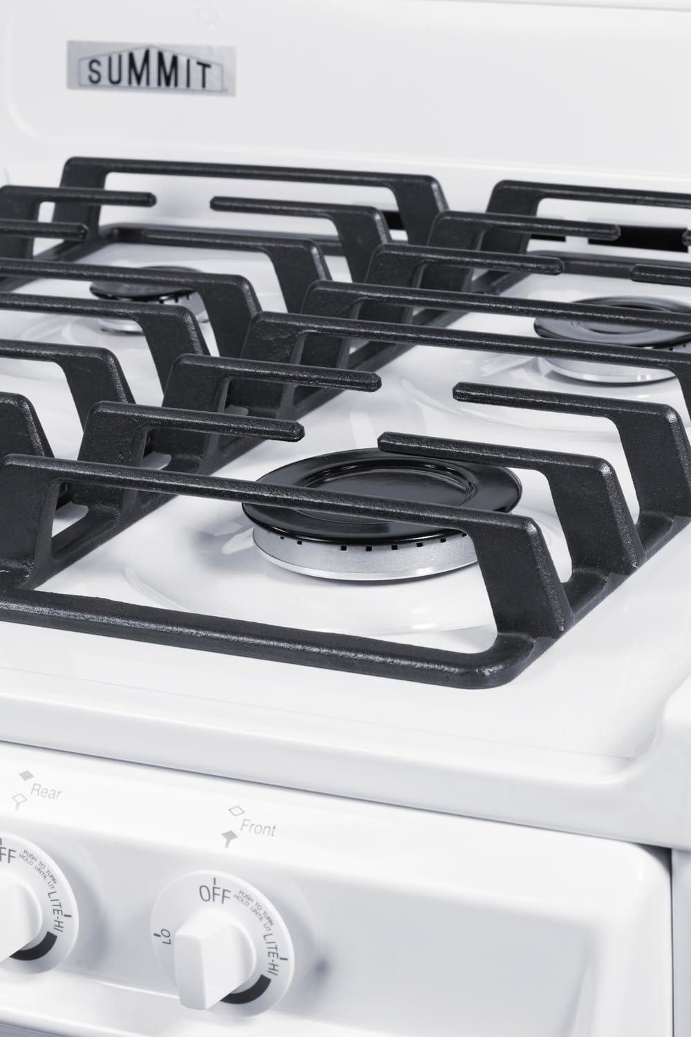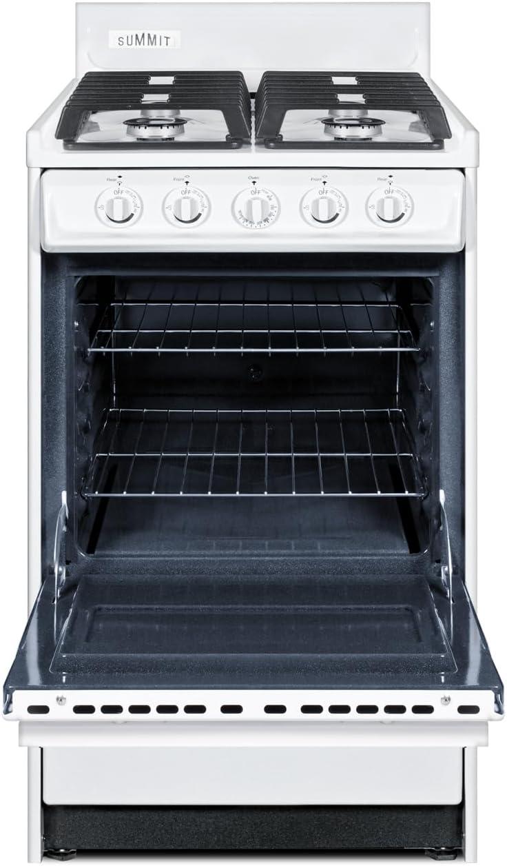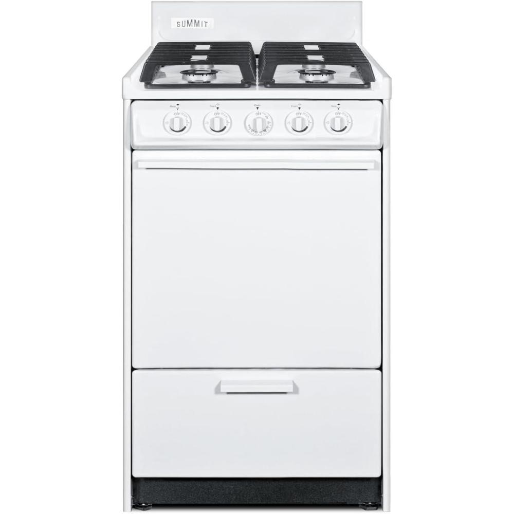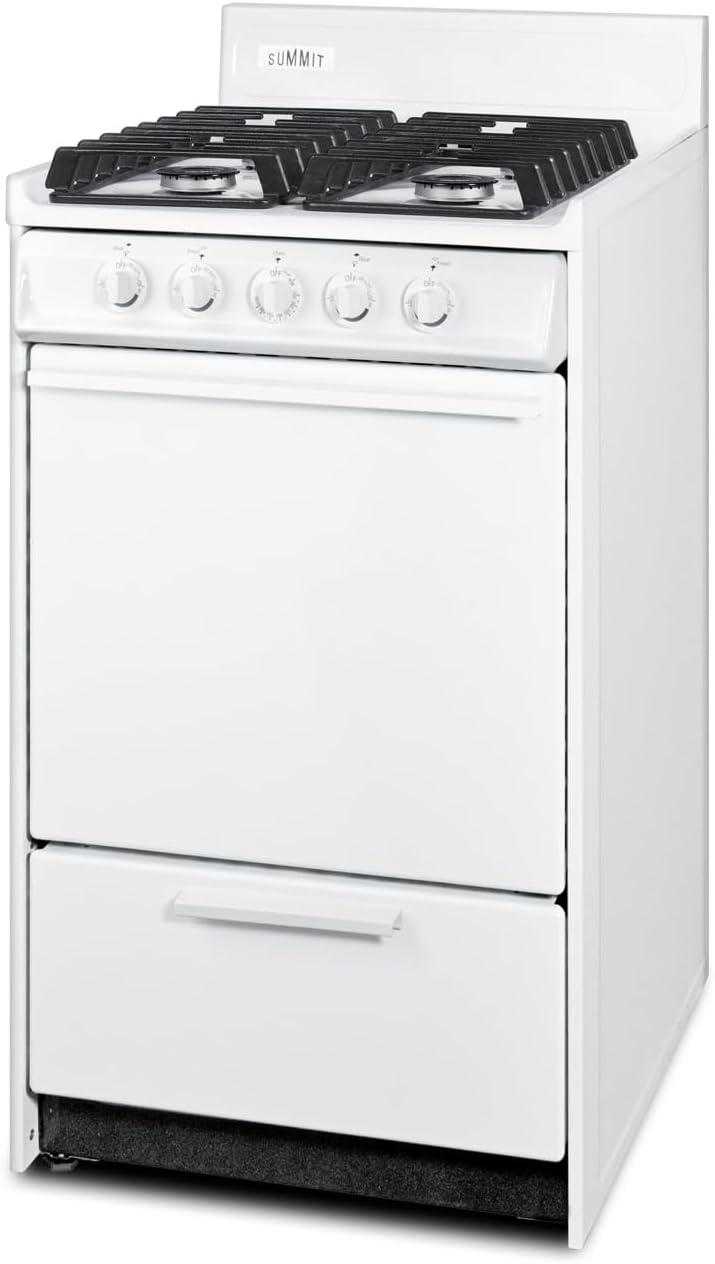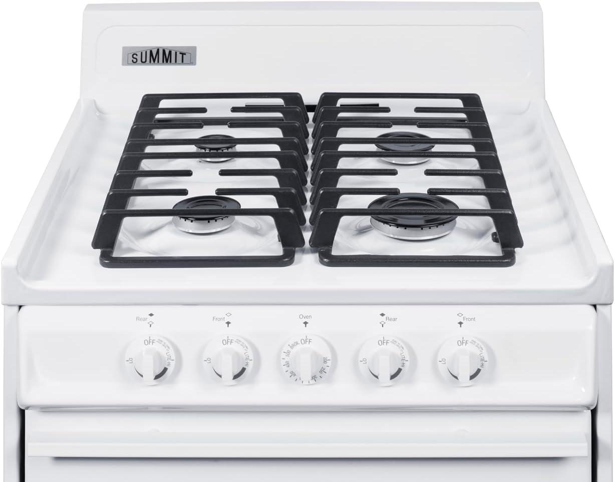 Summit 20″ Gas Range, Natural Gas Range, 2.46 cu.ft Oven, 4 Burners, White- WTM1107IS(No Window)