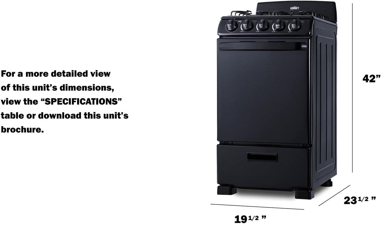 imageSummit 20 Inch Wide Gas Range 4 Sealed Burners 23 cuft Oven ADA Compliant RG201B WhiteBlack
