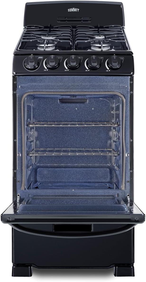 Summit 20” Inch Wide Gas Range, 4 Sealed Burners, 2.3 cu.ft. Oven (ADA Compliant)- RG201B (White)(Black)