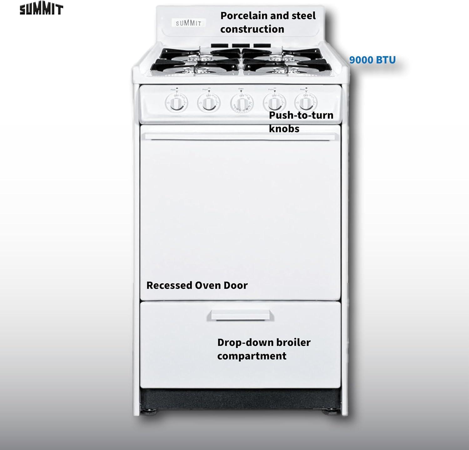 Summit 20″ Propane Over Range, Off Grid Propane Range, Battery Ignition, 2.46 cu.ft Capacity oven, white- WLM110P(white)
