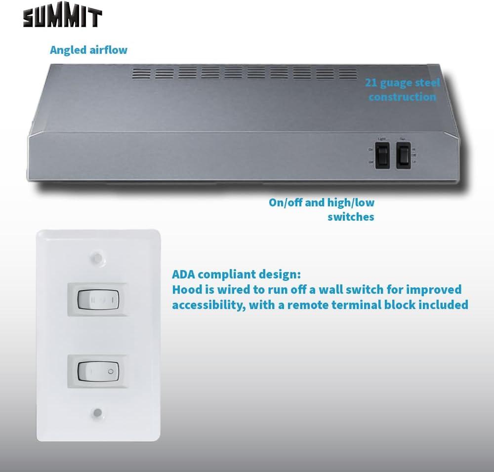 ADA compliant design: Hood is wired to run off a wall switch for improved accessibility, with a remote terminal block included.