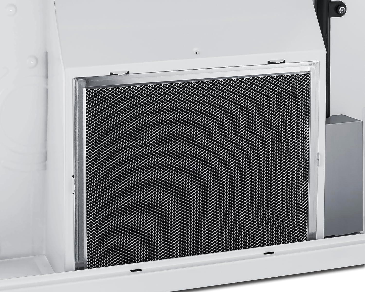 Built to work hard and last long: The powerful 2-speed fan is easily managed by a rocker switch with a high and low setting. This unit can operate at 270 CFM for thorough ventilation. Includes a combination aluminum mesh/charcoal removable filter to absorb grease, smoke, and odors.