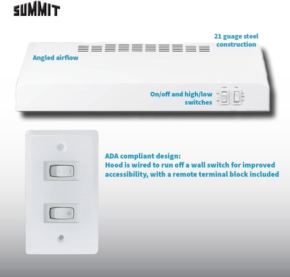 Summit 20” Under Cabinet Convertible Range Hood, Convertible Range Hood, ADA Compliant, White- HC20WWADA(White)