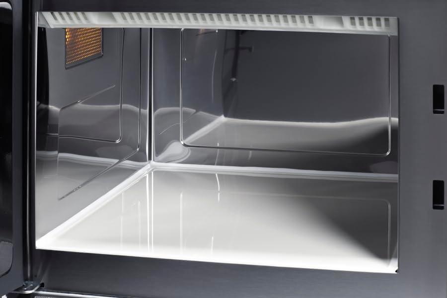 Fast and even cooking: Dual magnetron design offers two sources of microwave heat ensure fast, even cooking with increased power. Flat interior bottom maximizes the interior capacity and eliminates the need for a breakable turntable.