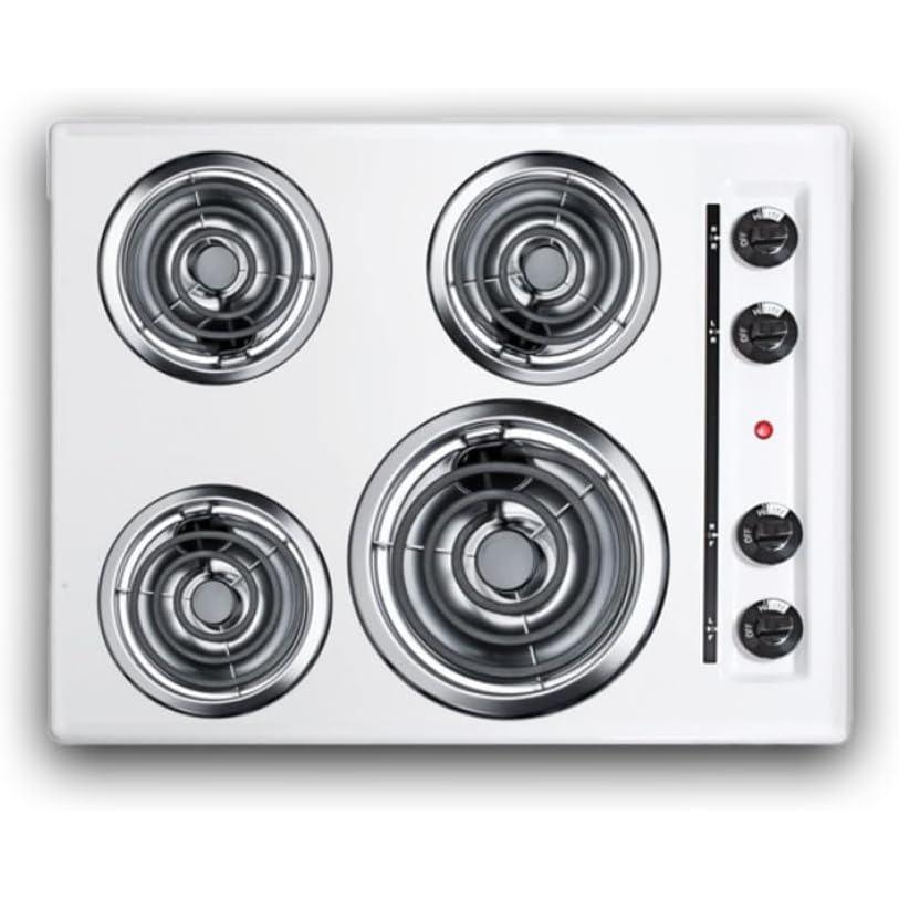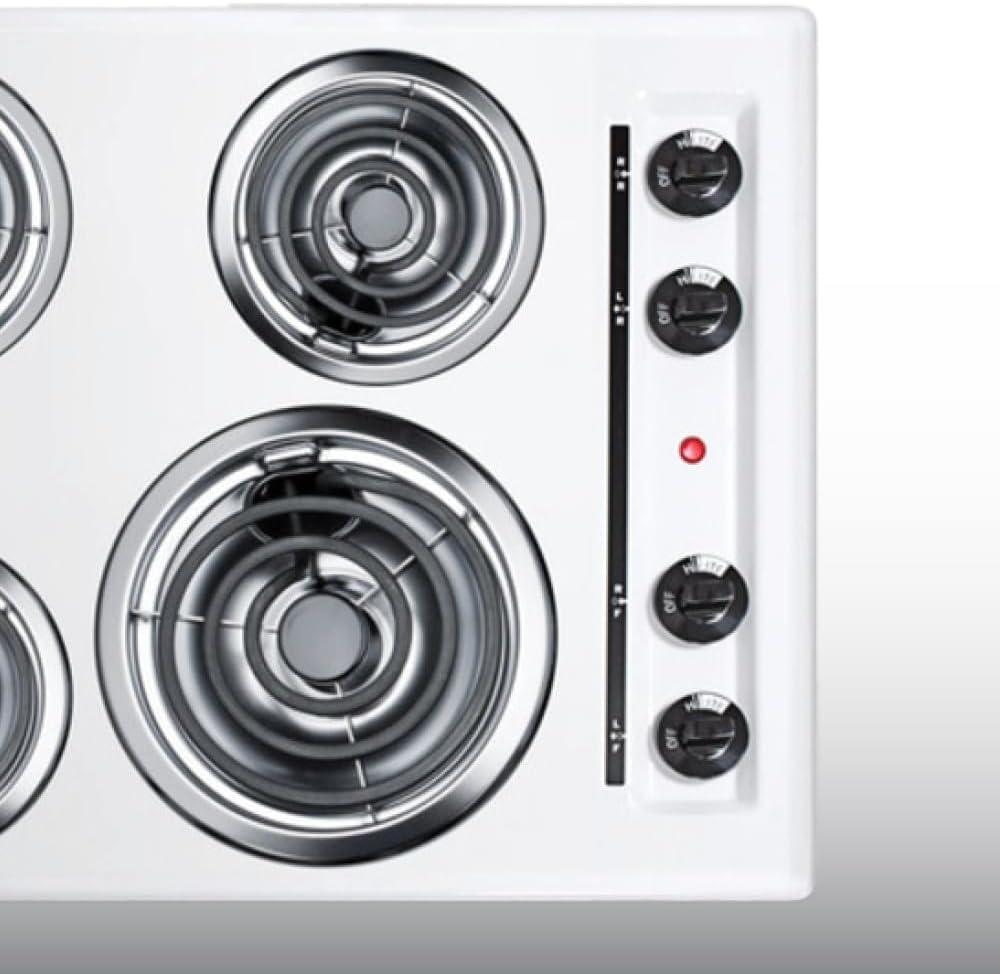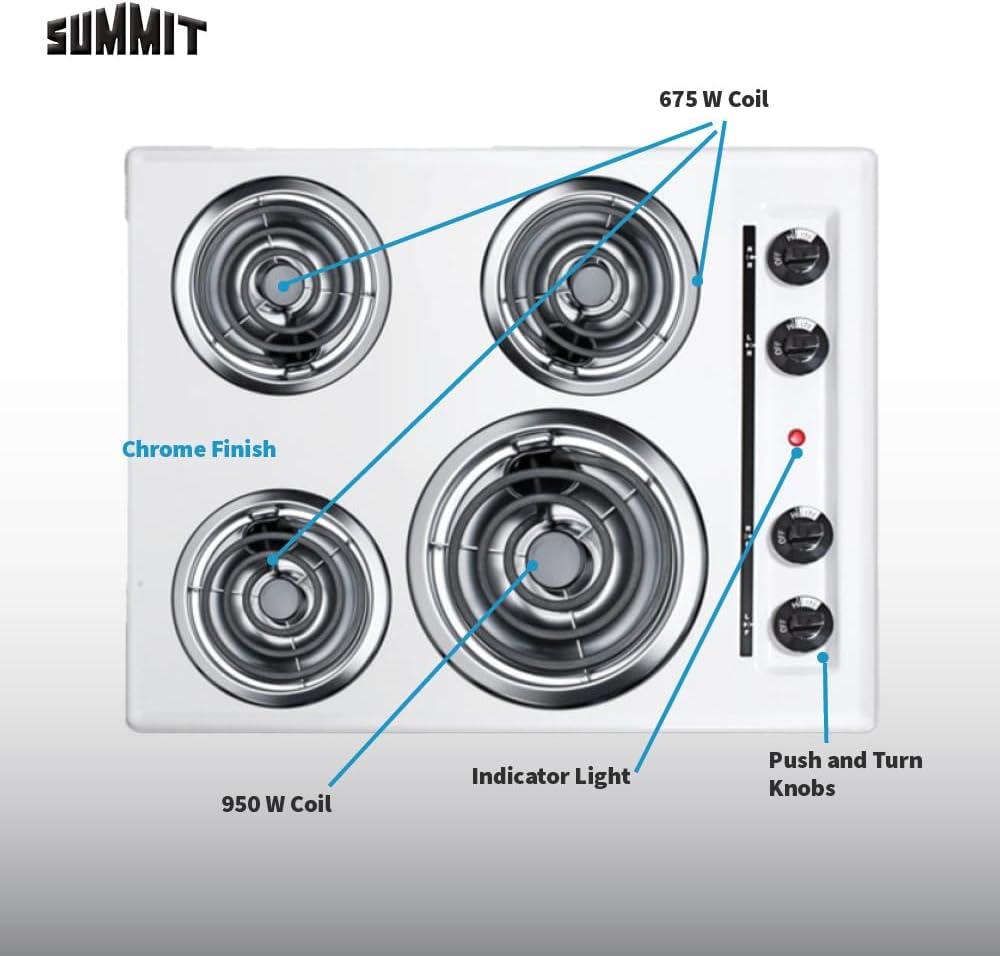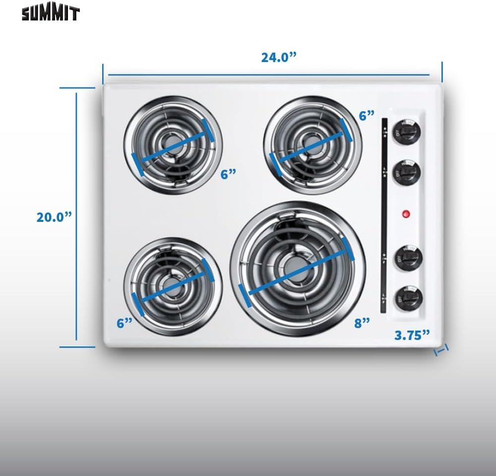 Summit 24″ 4 Burner Electric Cooktop. 230 Volt Coil Electric Cooktop, White- WEL03(white)