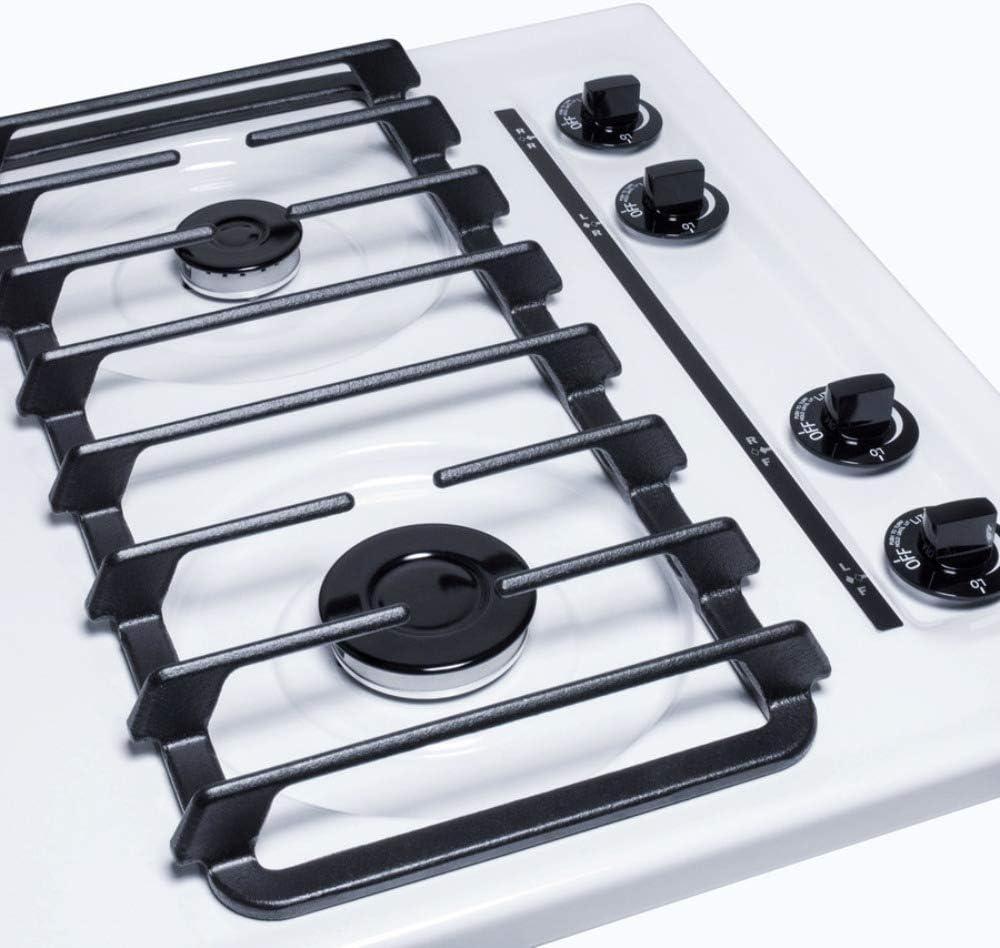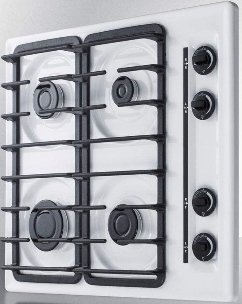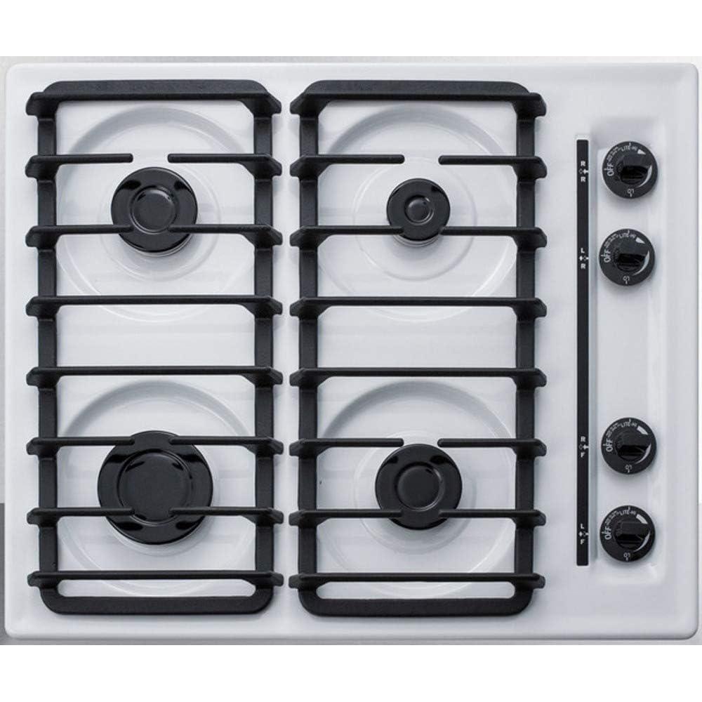 Summit Appliance WTL033S 24″ Wide Sealed Burner Gas Cooktop in White with Cast Iron Grates, Push-to-turn Knobs, Sealed Sabaf Burners, Removable Burner Caps and Electronic/Gas Spark Ignition