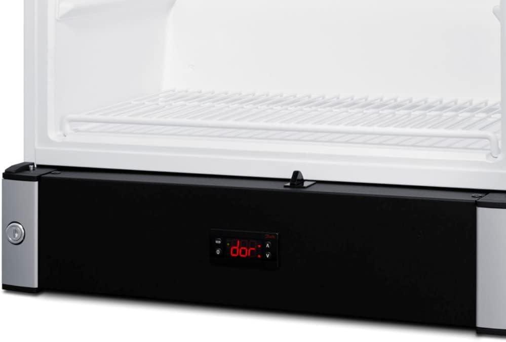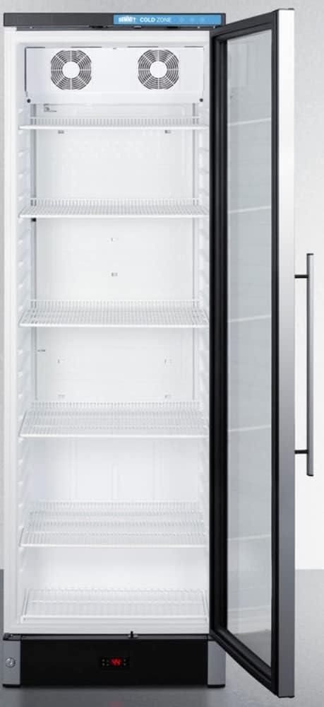 Made in Denmark, model Scr1301 is a 24″ wide 12.4 cu.ft. upright beverage merchandiser sized with a space-saving 25 1/4″ depth. The double pane tempered glass door includes built-in LED lighting to create an attractive and energy efficient presentation of stored items, helping to promote impulse buys. A factory-installed lock allows users to secure the door as needed. Digital controls ensure easy and intuitive operation. Inside, the Scr1301 features a bright interior for full product visibility. Five adjustable wire shelves let you rearrange your storage to accommodate a variety of sizes. Each shelf has a generous 79 lb. storage tolerance. We include one additional shelf to raise items off the floor. The automatic defrost system with a cold wall interior helps to keep beverages cold and minimize user maintenance, while powerful fan-forced cooling helps to evenly distribute airflow and promote fast temperature recovery in busy commercial environments. This refrigerator is ETL-S listed to NSF-7 commercial standards and utilizes environmentally-friendly hydrocarbon refrigerant to comply with CARB guidelines. Features: Made in Denmark Commercially approved to NSF-7 standards LED lighting inside door panel offers an attractive and efficient view Tropicalized glass door design keeps products well-preserved, even in hot temperatures Full visibility white interior for maximum impulse sales Factory installed lock offers added security Specifications: Total Capacity: 12.4 Cu. Ft. Temperature (Min): 32 F Temperature (Max): 50 F Control Type: Push Button Width: 23-3/8″ Height: 72-3/4″ Depth: 25-1/4″ Voltage: 115V Amperage: 2.4A