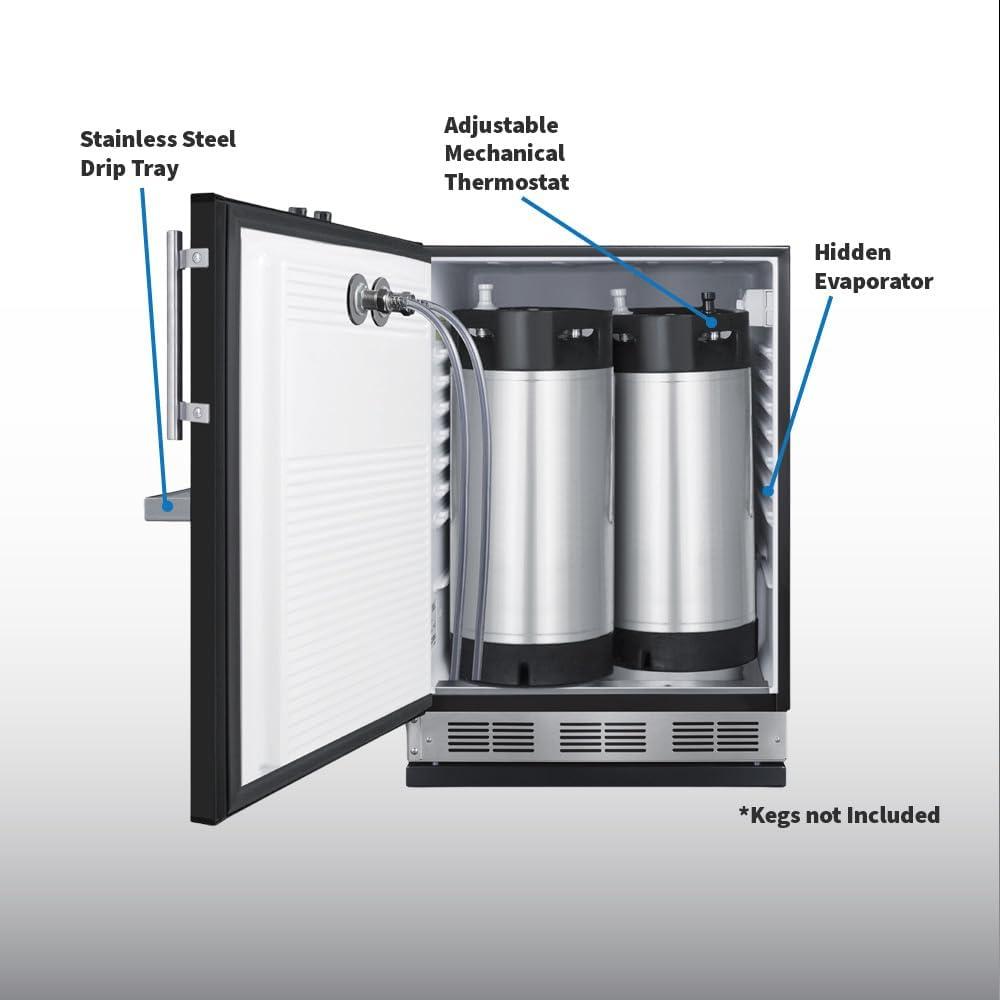 Summit 24" Cold Brew Kegerator, Dual Front Taps, No Drill Coffee Dispenser, ADA Compliant, Stainless Steel - SBC7BRSFRTPCFADALHD (Left Handed Door Swing)(Black)