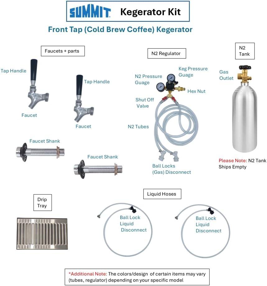 No-Commitment Front Door Tap: Kegerator includes front taps accessed via the door and includes all of the equipment needed to serve coffee from two sixtel kegs. Easy access to your favorite brews without need for counter top alterations. Refrigeration unit constructed in Europe then designed and modified in the USA.