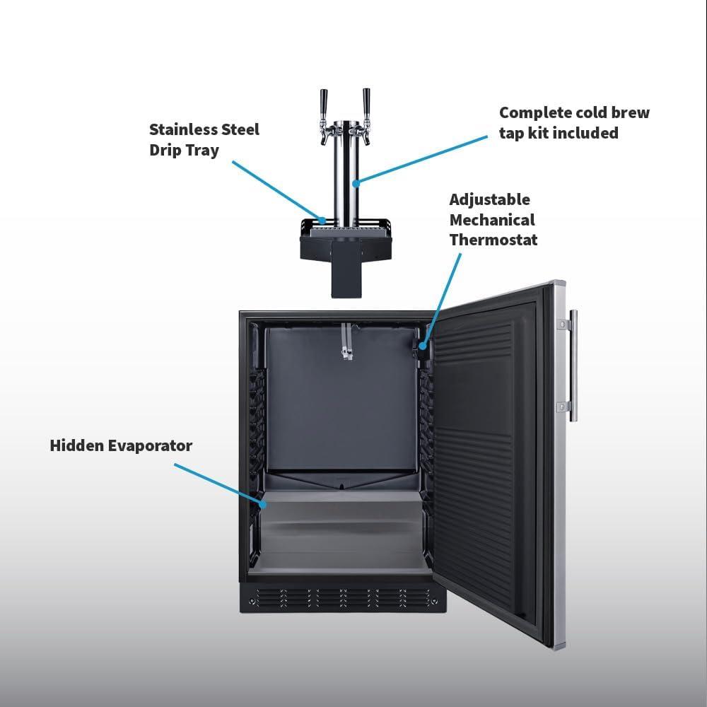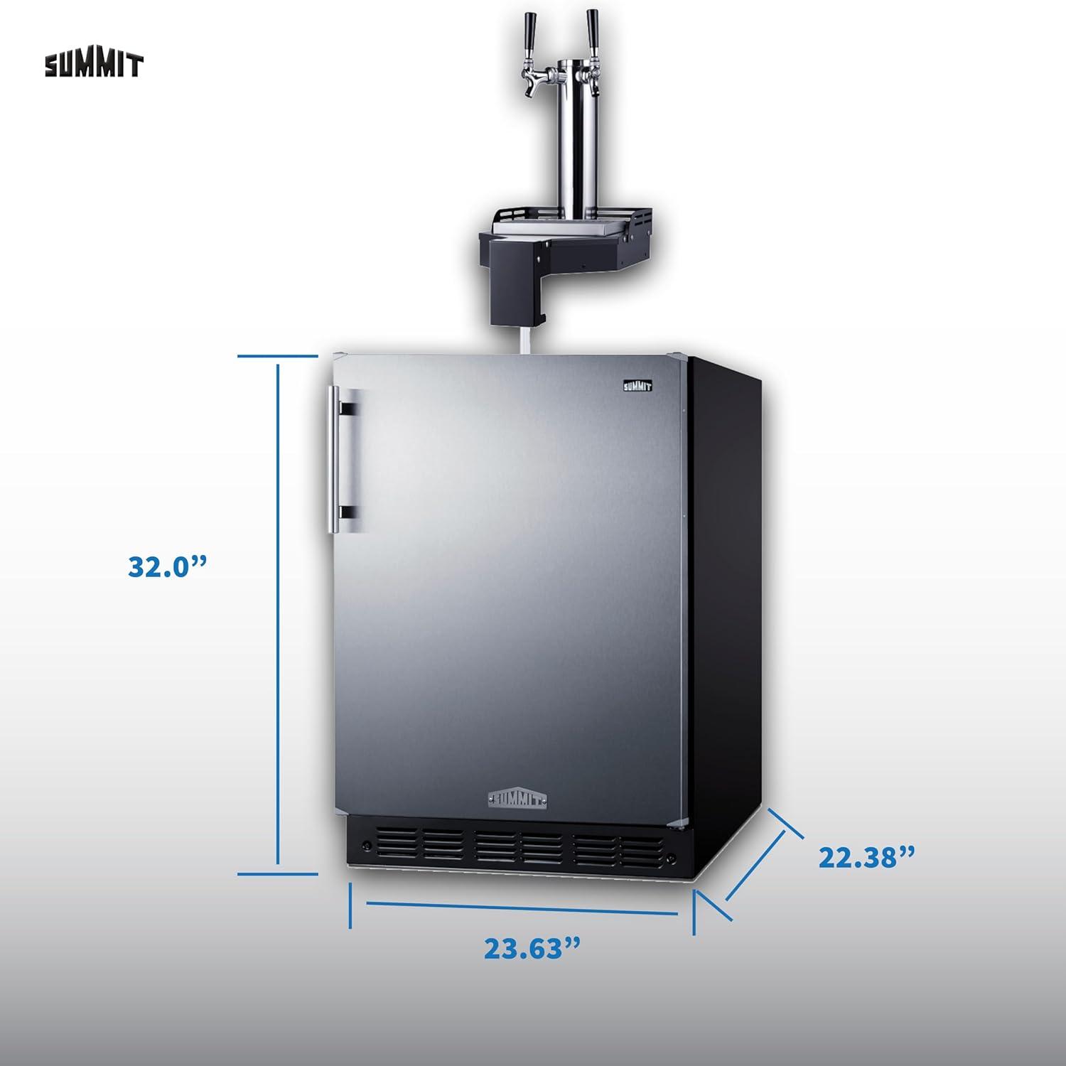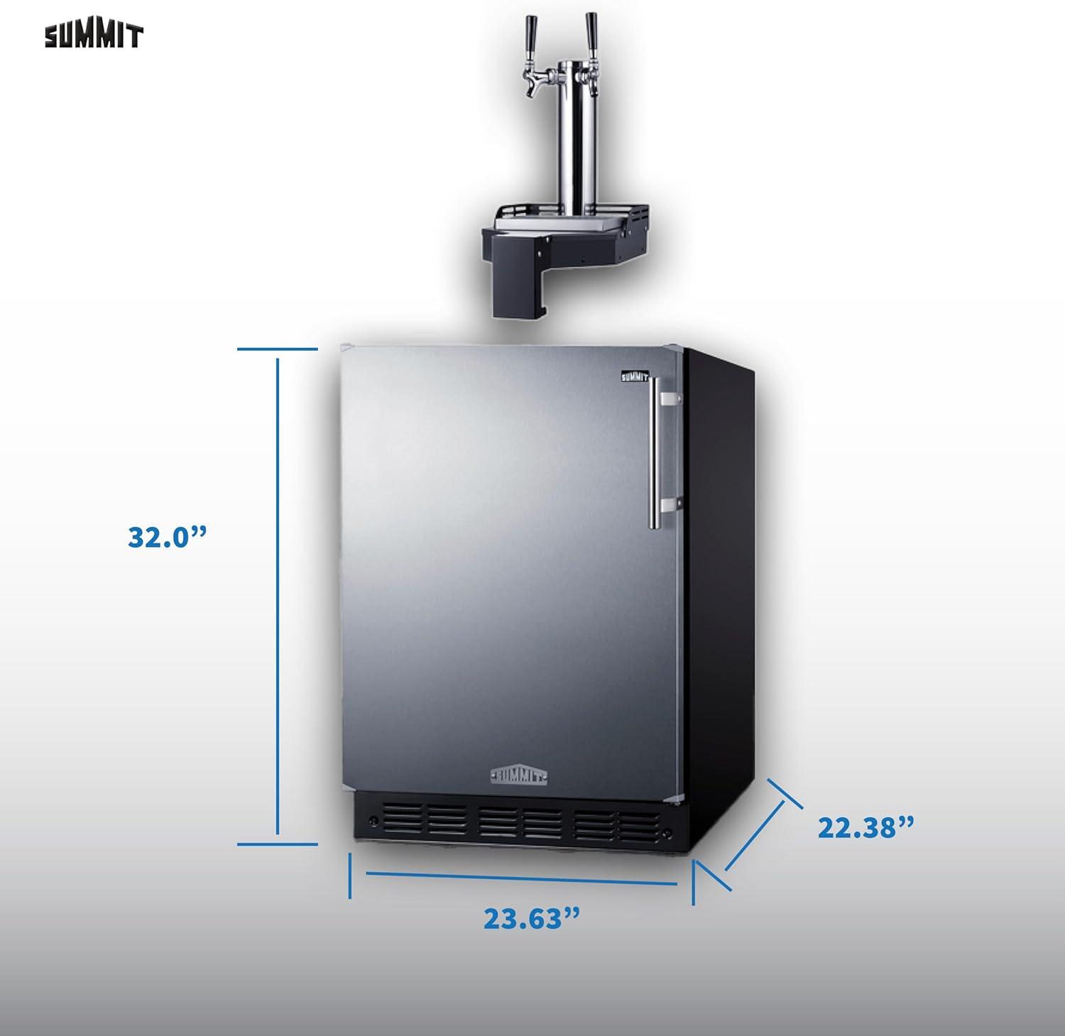 Dimensions & Build: 32.0″ H x 23.63″ W x 22.38″ D, Capacity 5.8 cu.ft. (164 L), Keg Capacity: Holds Two 1/6 (“Sixtel”) Kegs. Kegs not included.