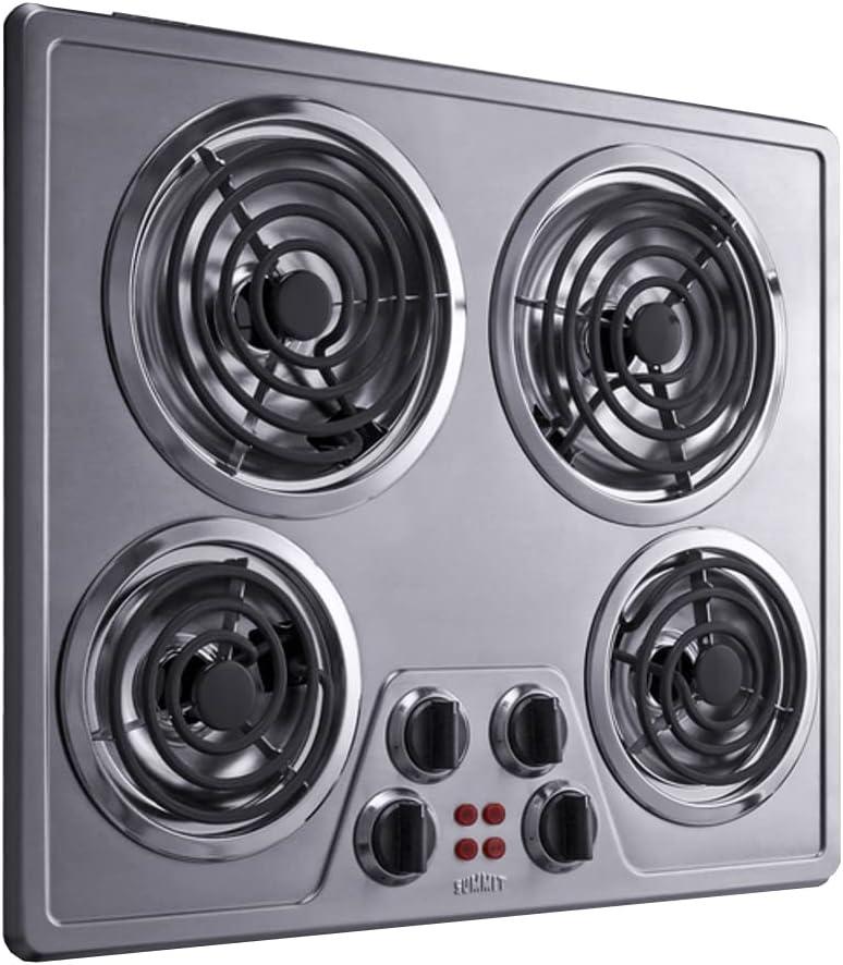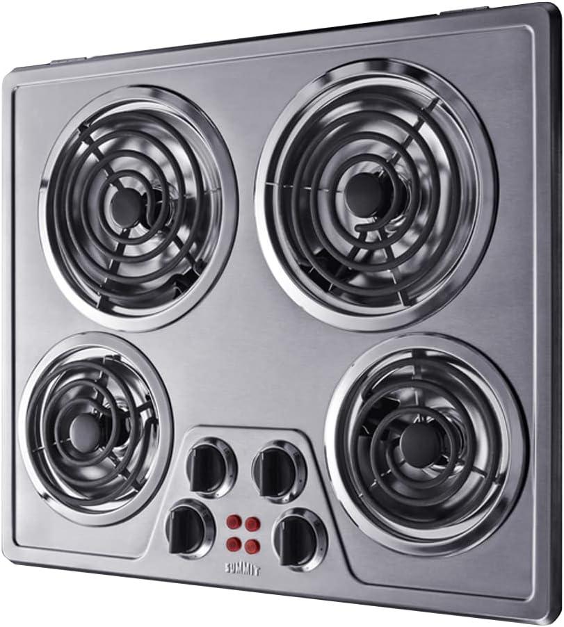 Summit 24″ Electric Cooktop, 4 Burners, 208-240V Coil Cooktop, ADA Compliant, Stainless Steel- CR4SS24(30-Inch)