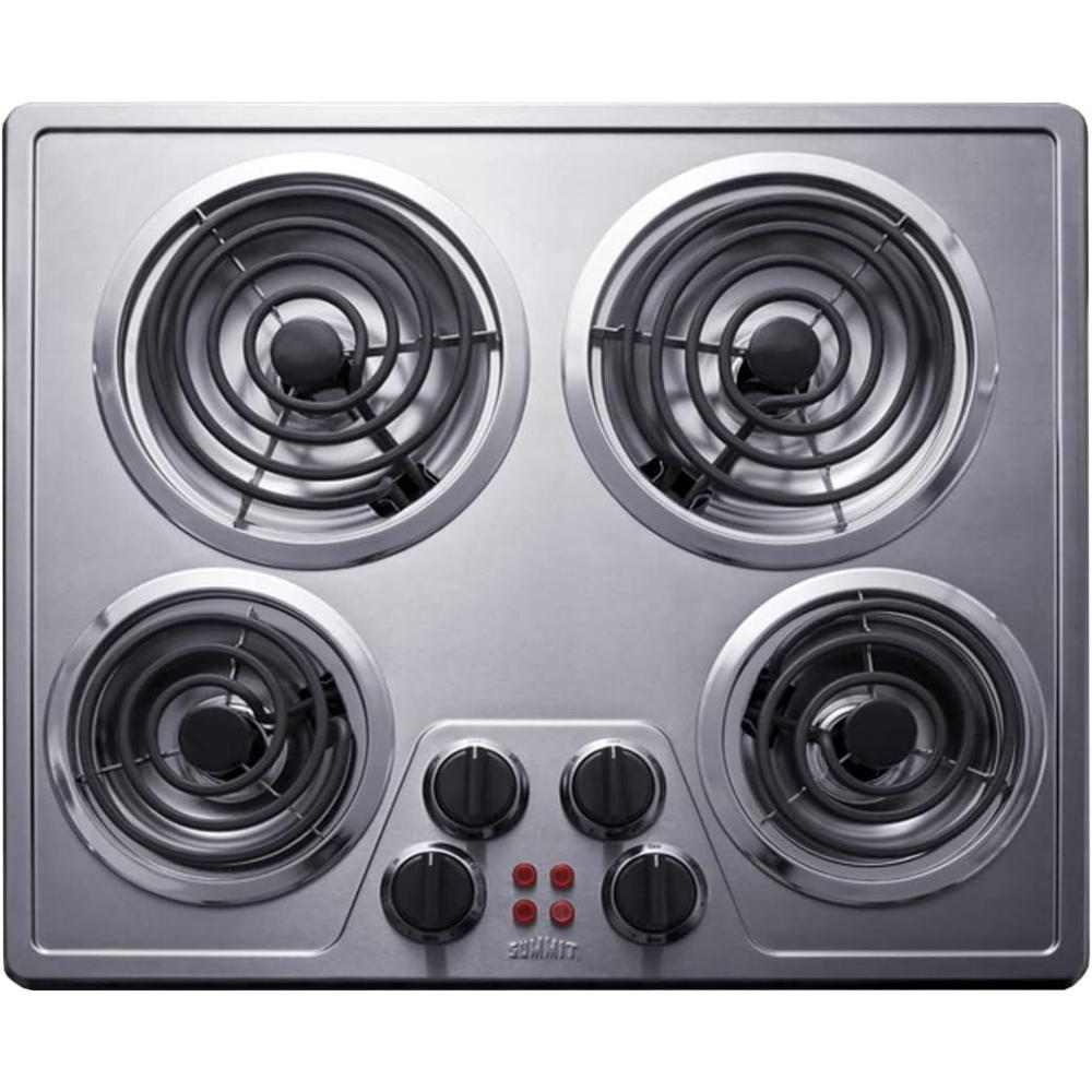 Summit 24" Electric Cooktop, 4 Burners, 208-240V Coil Cooktop, ADA Compliant, Stainless Steel- CR4SS24(24-Inch)