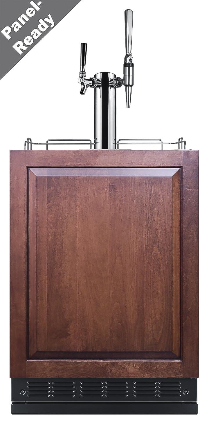 Dimensions & Build: 33.5″ H x 23.63″ W x 22.38″ D, Capacity 5.3 cu.ft. (150 L), Keg Capacity: Holds Two 1/6 (“Sixtel”) Kegs. (Panel size: 23 5/16″ W x 28 1/4″ H and at least 3/4″ thick; maximum weight: 10 lbs.) *Panel Is Not Included.