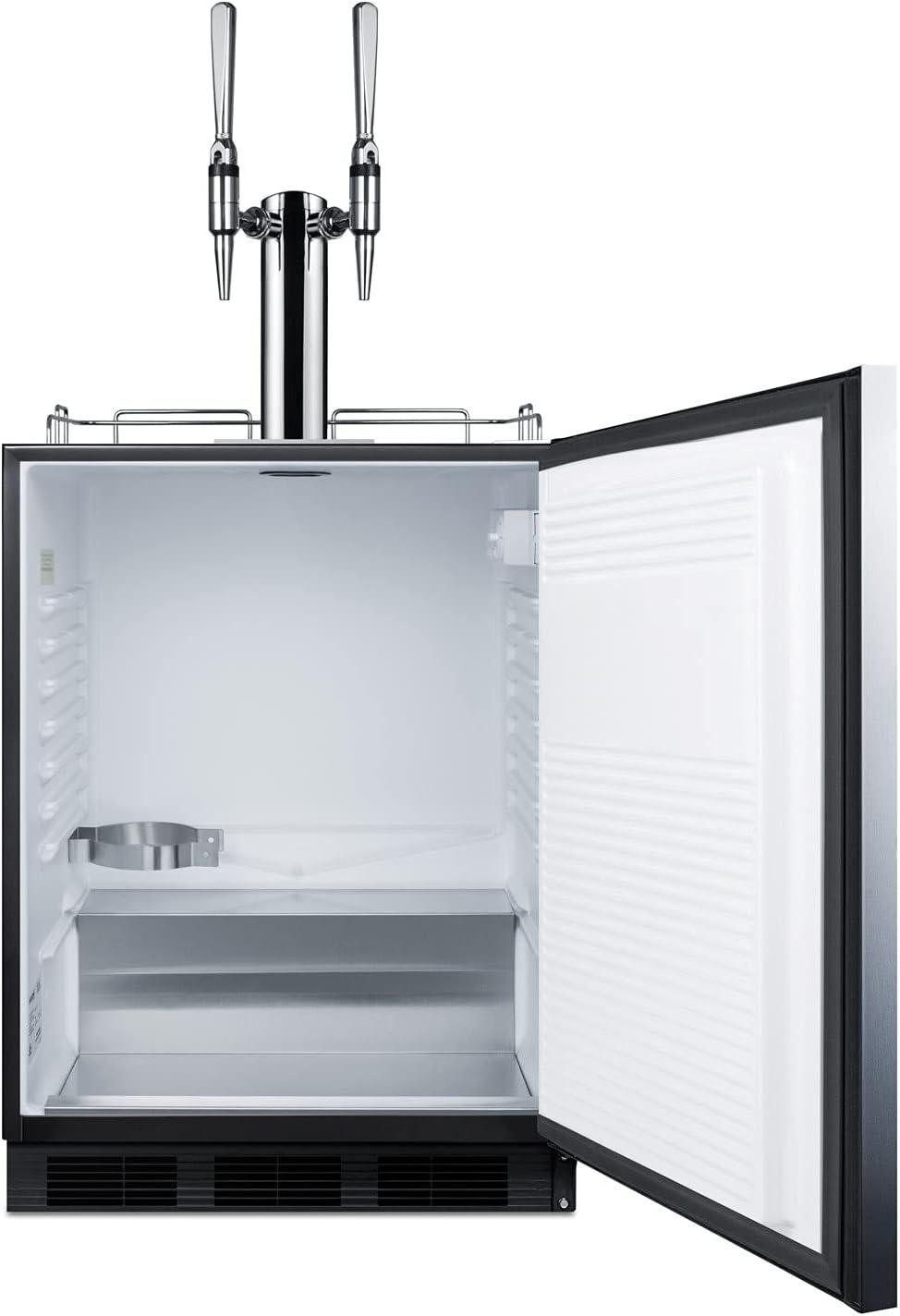 Perfect for your needs: Sized at 32 inches high (32.25 to hinge cap) for installation under lower ADA compliant counters. Inside, the stainless steel floor ensures safer loading of heavy kegs. The kegerator interior includes a Nitrogen tank holder and space for two 1/6 (sixtel) kegs (not included). Nitrogen tank, dual stout style tap kit, regulator, and stainless steel drip tray included.