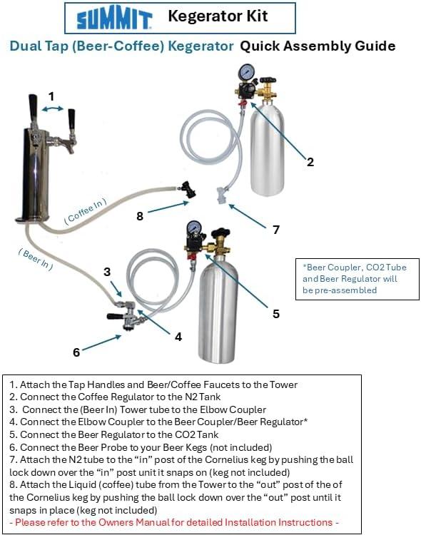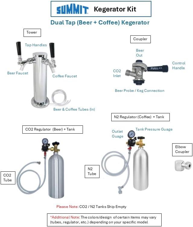 Complete Tap Kits for Instant Enjoyment: Enjoy your favorite drinks with complete tap kits for both beer and coffee. This model maintains a 34°F to 68°F temperature range for a perfect iced coffee or draft beer. Built to fit two 1/6 (sixtel) kegs (not included) and gas tanks for CO2 and Nitrogen gas. (ships empty).