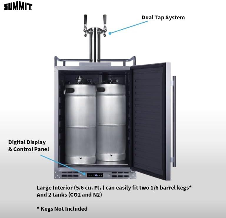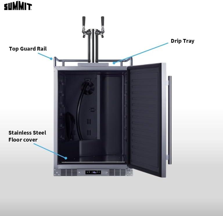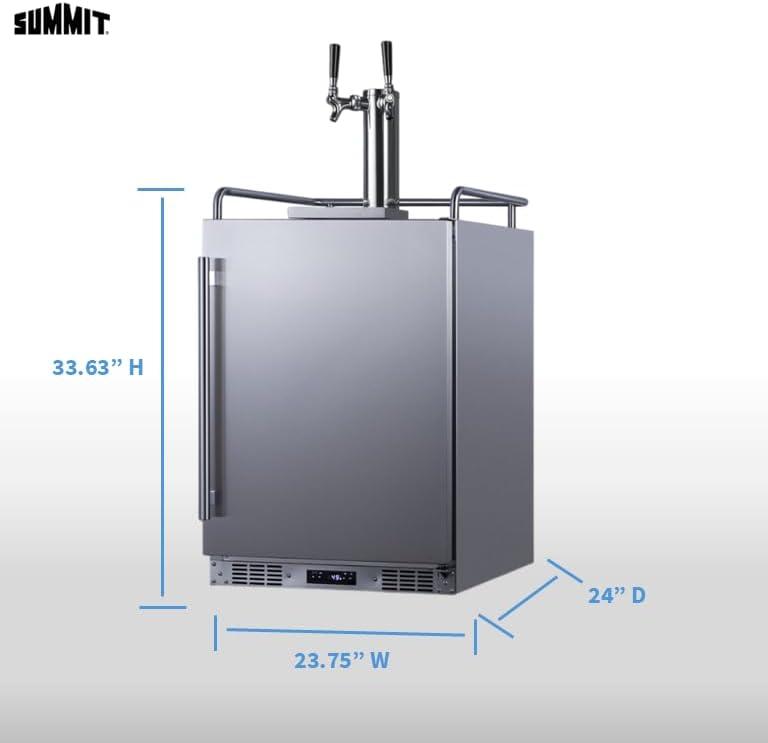 Dimensions & Build: 33.63″ H x 23.75″ W x 24.0″ D, Keg Capacity: Holds Two 1/6 (“Sixtel”) Kegs. (Kegs not included).