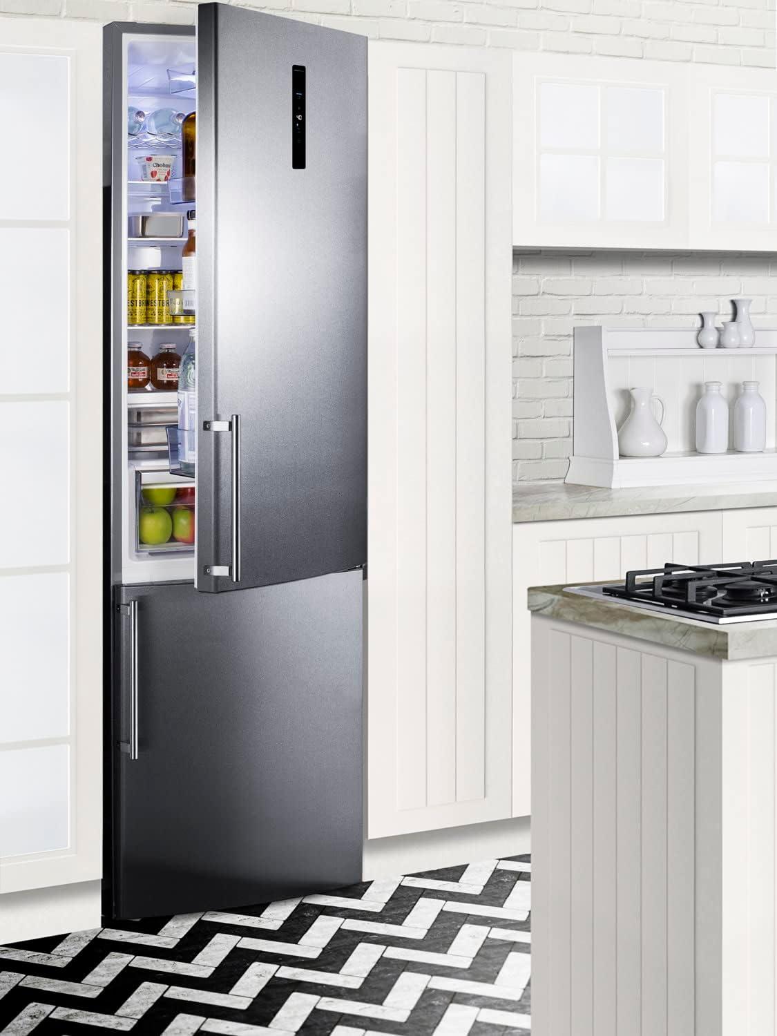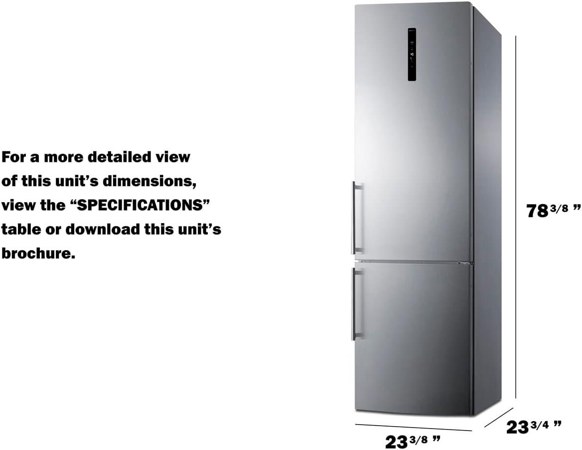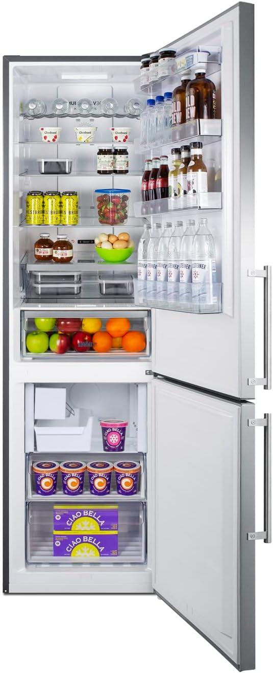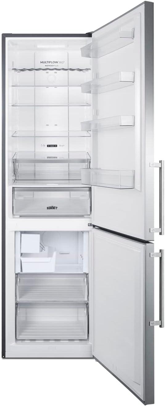 Summit Appliance FFBF181ES2IM 24″ Wide Bottom Freezer Refrigerator With Icemaker, 11.7 cu.ft Capacity, Open Door Alarm, Stainless Steel Doors, LED Visual Alarms, No-frost Operation, Multi-Flow Fan