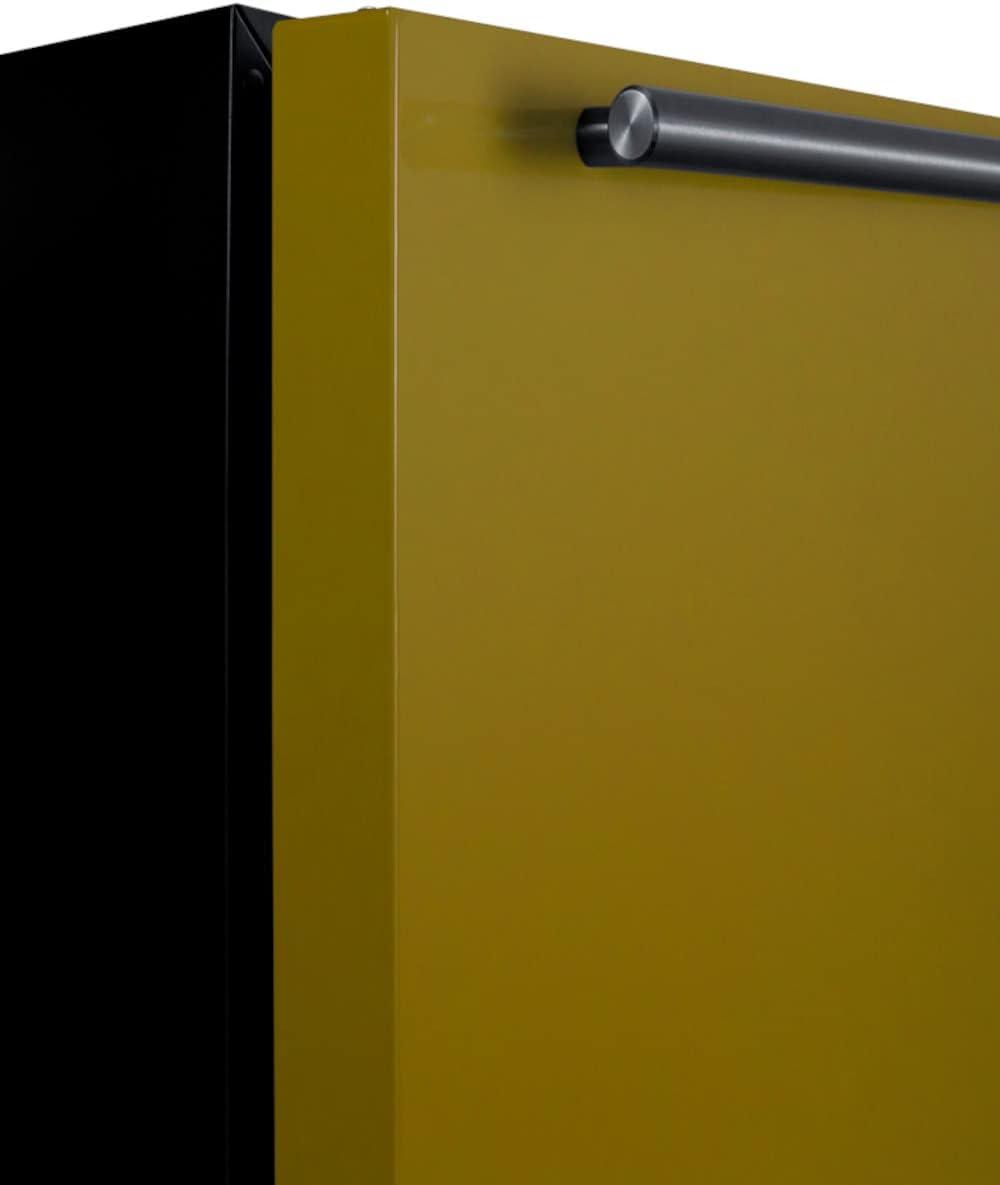 Model BAR631BKPADA is a 24″ wide all-refrigerator sized at just 32″ high for use in ADA compliant settings. The door finish comes in an attractive lavender purple hue, with a sleek horizontally mounted stainless steel handle and matching stainless steel kickplate to complete the unique look. This unit has a jet black cabinet. It is manufactured in Europe and modified in the United States with domestic steel finishing