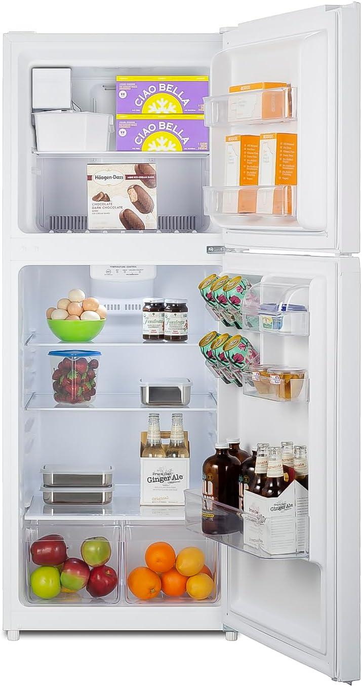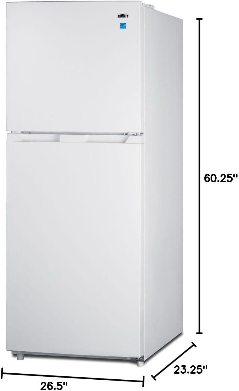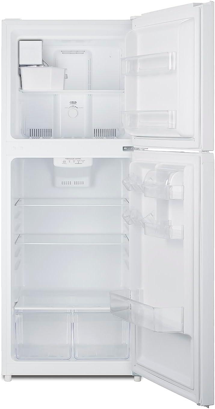 Model FF1088WIM offers over 10 cu.ft. of storage capacity in a slim fit under 24″ wide and 60″ high. The design meets ADA guidelines for user accessibility. This unit comes in a clean white finish with a user-reversible door swing to accommodate any space. The rear is sealed with no exposed coils for a better fit and easier cleanup. Inside, the FF1088WIM comes fully featured for convenient storage. The refrigerator section includes adjustable spill-proof glass shelves and two clear crispers with humidity slides for optimum produce storage. Door storage includes a large rack sized to hold gallon containers, removable half rack, covered butter rack, and two can racks to keep jars and other round containers in place. The fresh food section features intuitive touch controls and an automatic interior light. The large freezer compartment includes a factory-installed icemaker with an 8 lb. capacity, as well as two door shelves and an adjustable glass shelf.
