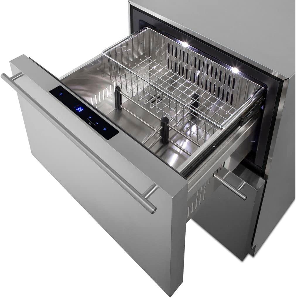 Perfect refrigerator for your needs, indoors or outdoors: This 2-drawer, stainless steel, refrigerator is perfectly designed for built-in or freestanding use in ADA compliant settings. The durable, stainless steel cabinet offers weatherproof construction designed to hold up to the elements.