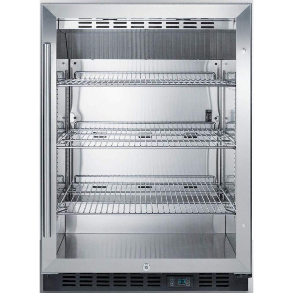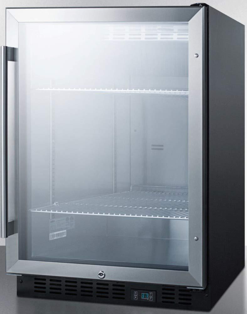 Inside, the SCR610BL utilizes low maintenance automatic defrost operation with an internal fan to ensure even temperature distribution. Recessed LED lighting offers the perfect display conditions inside the durable and easy-to-clean stainless steel interior. This unit includes three cantilevered chrome shelves to ensure flexible storage that accommodates any item size. High temperature and open door alarms offer added protection.