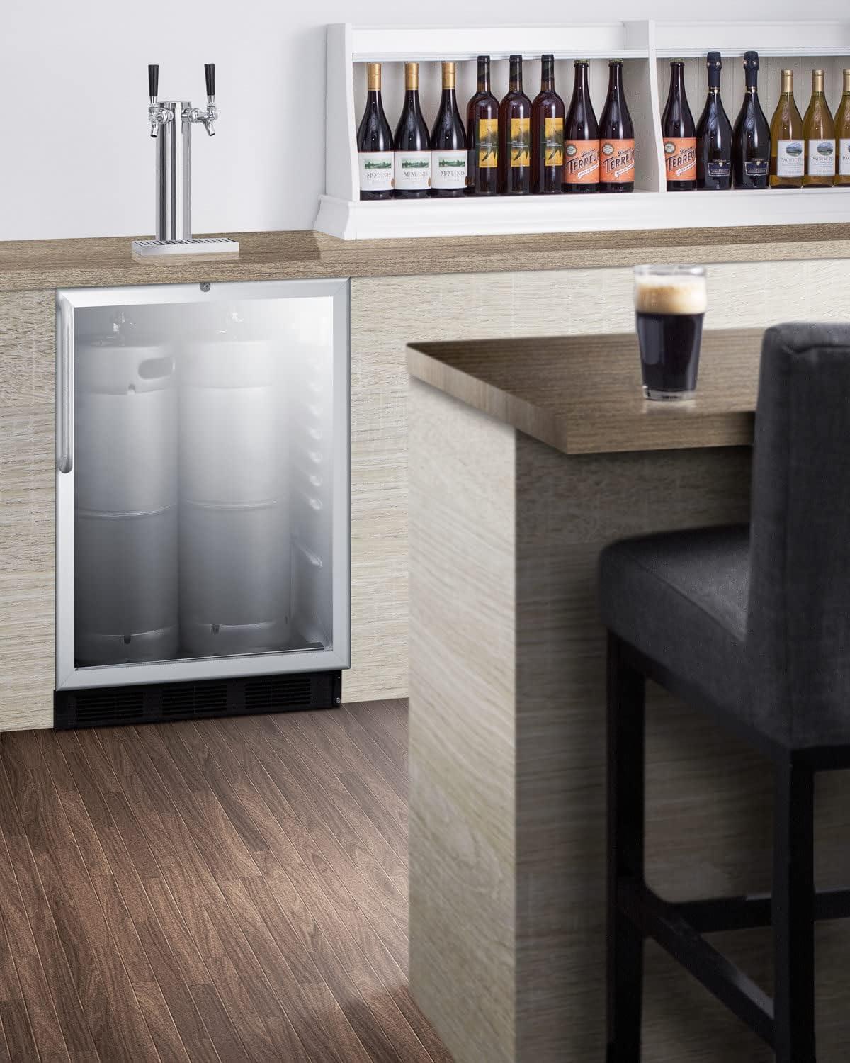Summit 24″ Undercounter Kegerator, Dual Tap Kit, ADA-Compliant, Glass Door- SBC56GBICSSADA(Metallic)