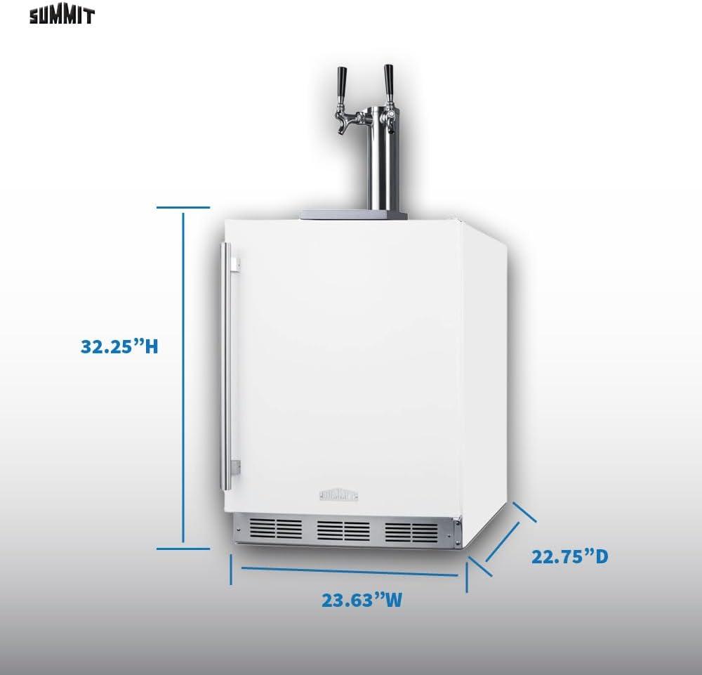 Dimensions & Build: 32.25″ H x 23.63″ W x 22.75″ D , Capacity 5.5 cu.ft. (156 L), Keg Capacity: Holds Two 1/6 (“Sixtel”) Kegs. Kegs not included.