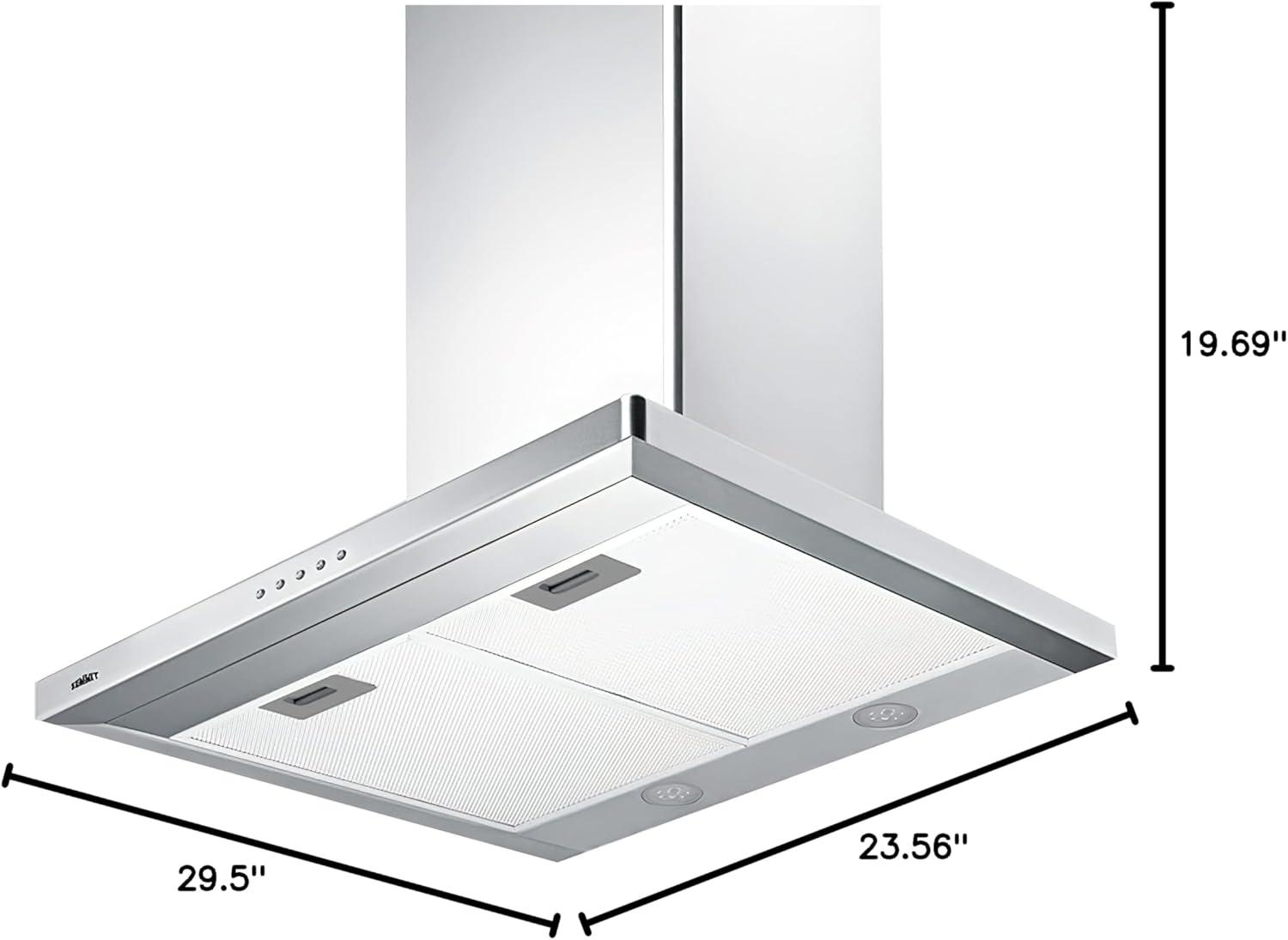 Summit Appliance SEH4630SS Wall-Mounted 30″ Wide Range Hood, Stainless Steel Finish, Filter Included, Multi-speed Fan, 400 CFM, 6″ Round Ducting, LED Lighting, Adjustable Height, Intuitive Controls