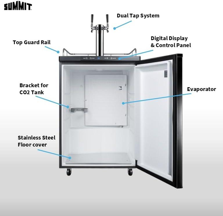 Dimensions & Build: 33.5″ H x 23.63″ W x 25.0″ D, Keg Capacity: Holds Two 1/6 (“Sixtel”) Kegs (Kegs not included).