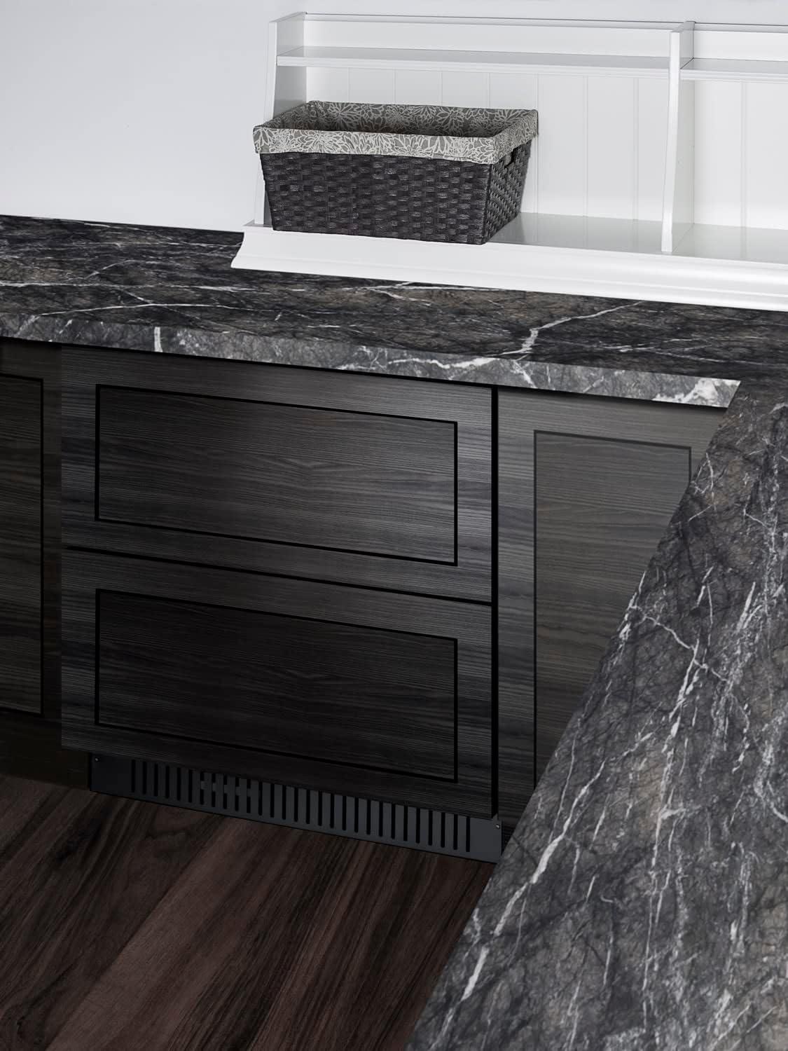 Model SPR275OS2DPNR is a panel-ready 2-drawer all-refrigerator sized just under 27″ wide and under 24″ deep for an easy fit under the counter in any kitchen with limited depth. The drawer fronts are designed to accept overlay panels (sized at 26.77″ W x 13.78″ H at a 3/4″ thickness) to allow you to create a custom look that best suits your kitchen design. We include a set of handles for optional use, and the drawer fronts are fully finished in stainless steel if you prefer that style. The front-breathing design allows built-in installation, while the fully finished black cabinet also enables freestanding use. The sealed back and right angle plug help to ensure an easy fit.