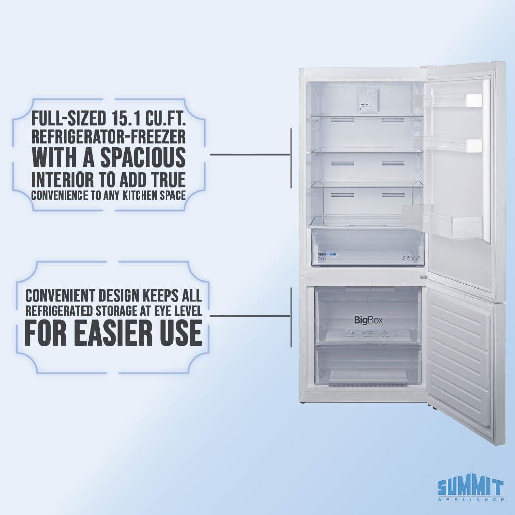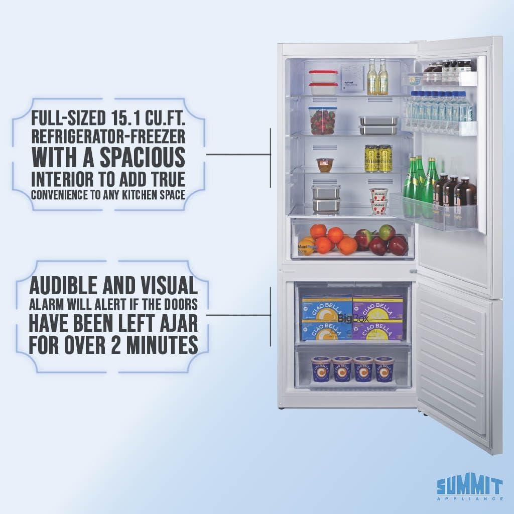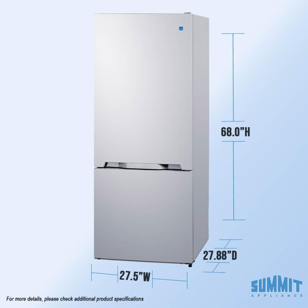 Summit 28″ Bottom Freezer Refrigerator, Refrigerator- Freezer, Energy Star, Stainless Steel – FFBF154SS (Right Hand Door)(White)