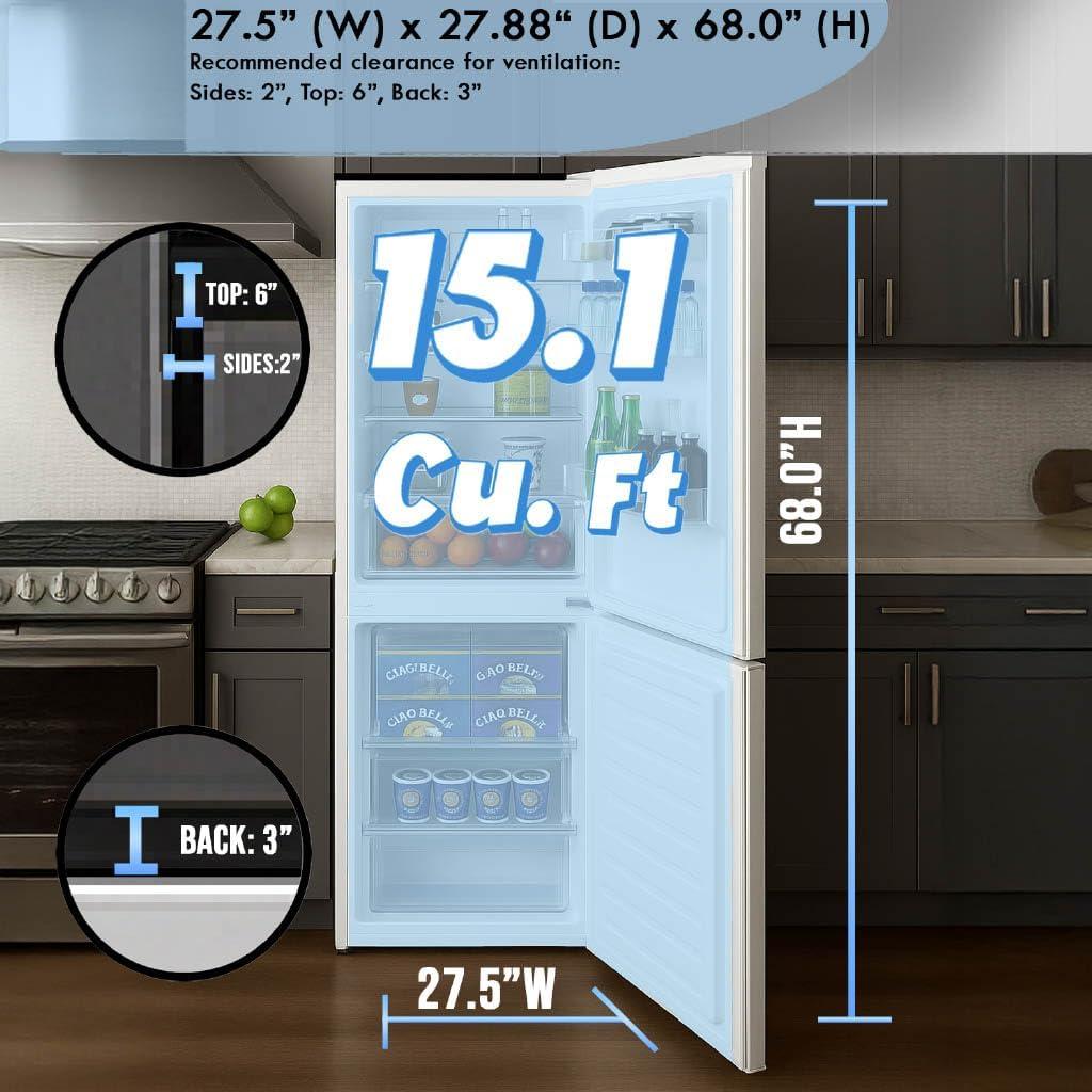 Dimensions & Build: 68.0″ H x 27.5″ W x 27.88″ D, Capacity 15.1 cu.ft. (428 L).